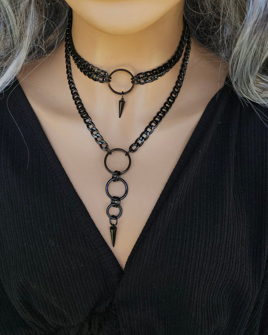 Black Steel Gothic Style Day Collar Choker Layered Necklace Set with Spike