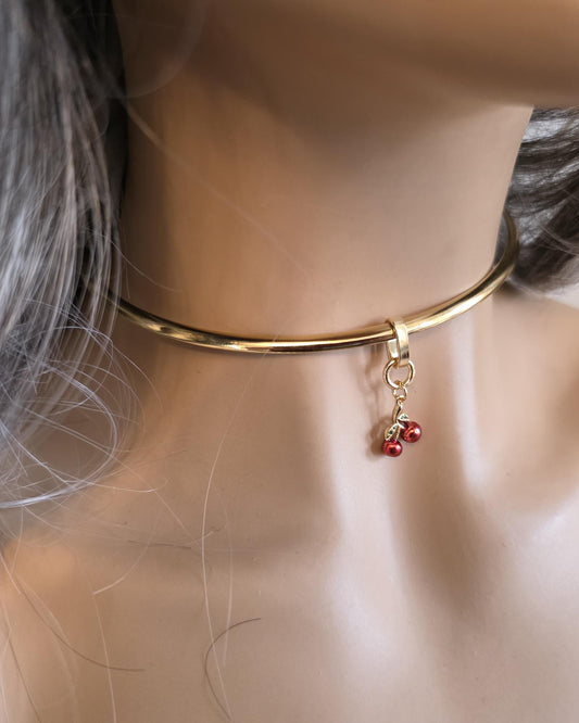 Gold Discreet Day Collar Choker Cherries Pendant Cherry Necklace - Intimate Couples Jewelry