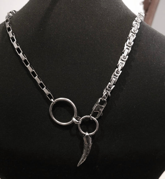 Steel Gothic Punk Aesthetic Alt Necklace with Tusk Pendant