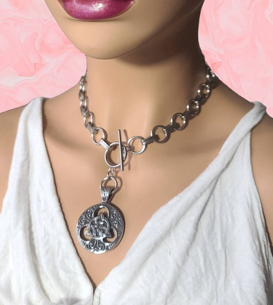 Celtic Witch Knot Schutz Amulett Anhänger Halskette Chunky geschichteten Set
