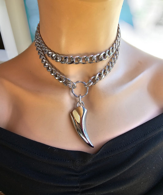 Chunky Norse Goth Wolf Zahn Choker geschichteten Halskette Set