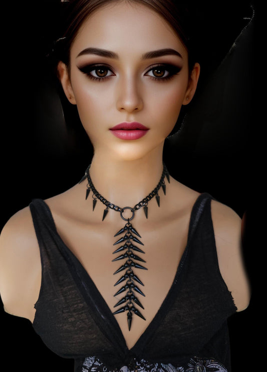 Schwarzer Stahl Spike Gothic Punk Choker Wirbelsäule Halskette | Dark Academia Aesthetic