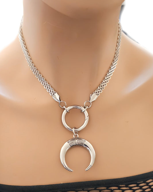 Mondsichel Horn Anhänger Witchy Choker Halskette mit Ring-Verschluss