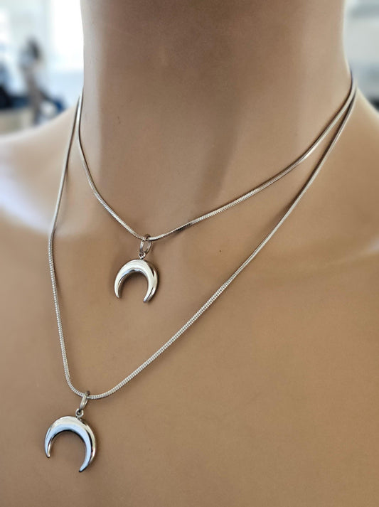 Mondsichel Silber Anhänger Halsketten auf zierliche Schlange Kette