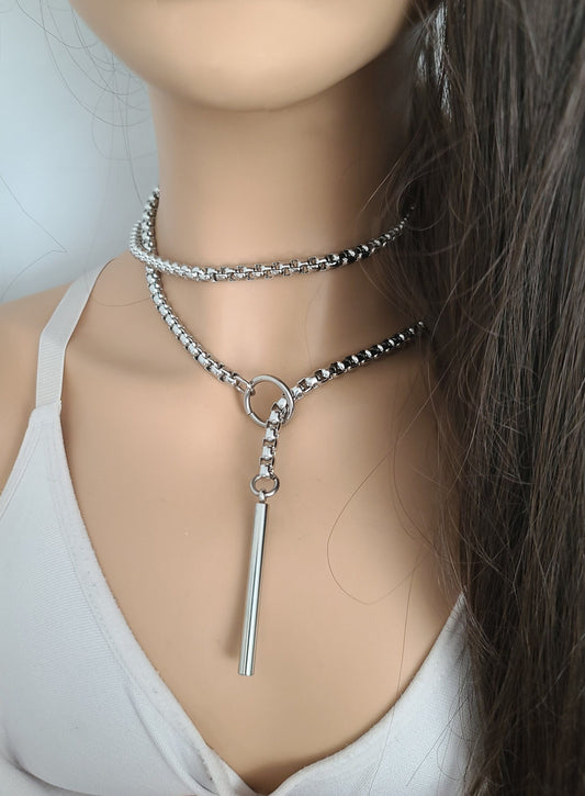 Stahl Lariat klobige Kette geschichtet Slip Kette Bar Anhänger Choker Wrap Halskette
