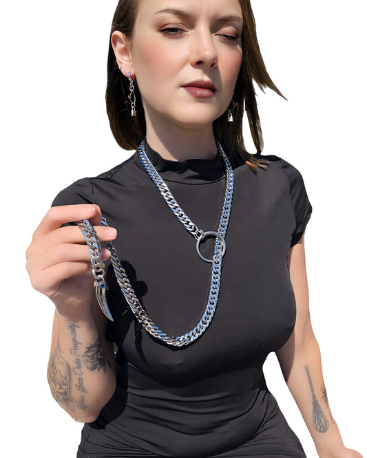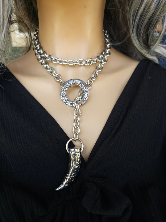 XXL Slip Chain Heavy Metal Stahl Lariat Halskette mit Stahl Tusk Anhänger - Goth Halskette, Edgy Schmuck, Edgy Halskette, Paare Schmuck
