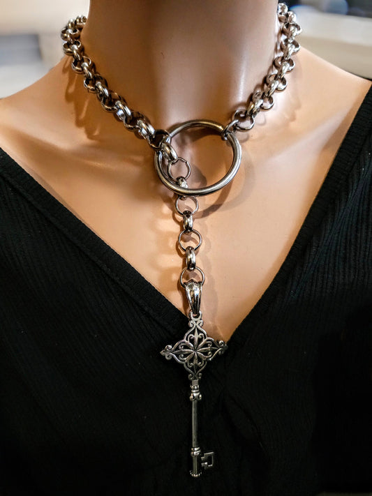 Silberne Stahl-Lariat-Kette mit Skelett-Schlüsselanhänger