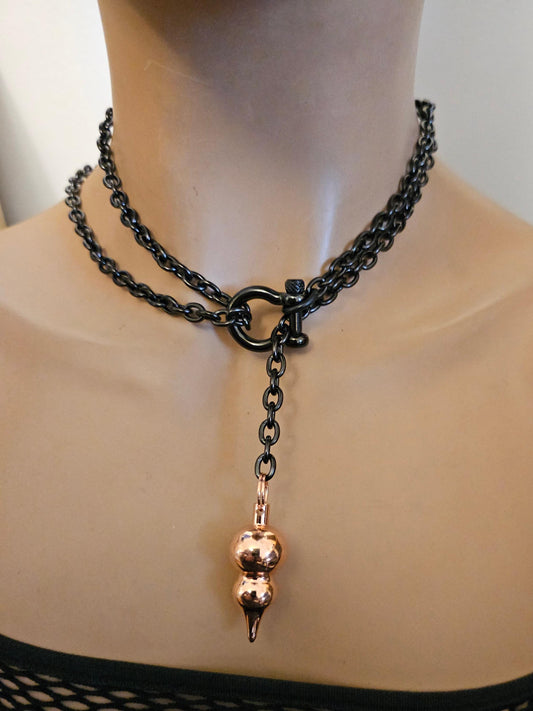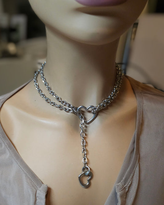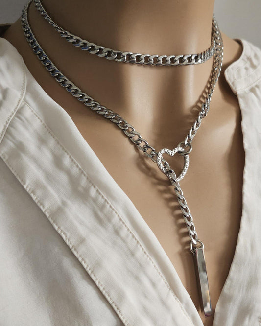 Stahl Slip Chain Lariat Wrap Heart & Bar Anhänger | Intime Tuggable Schmuck für Paare