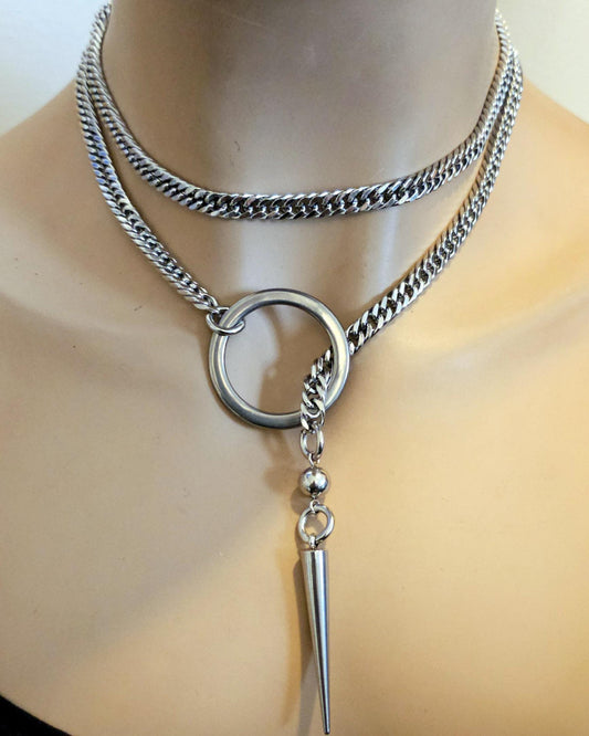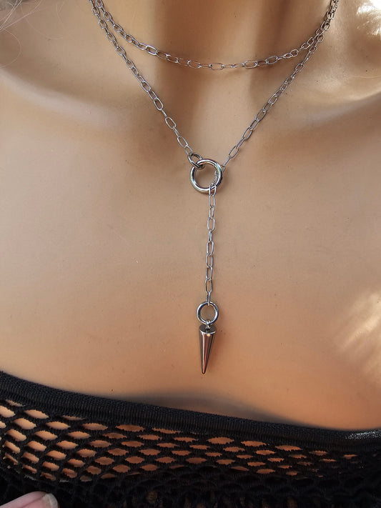 Stahl Lariat zierliche Choker Wrap Halskette mit Spike-Anhänger | Dark Academia Aesthetic