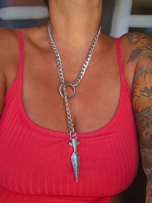 Slip Chain Viking Norse Goth Initimate Kragen Choker Lariat Halskette mit Odin's Speer