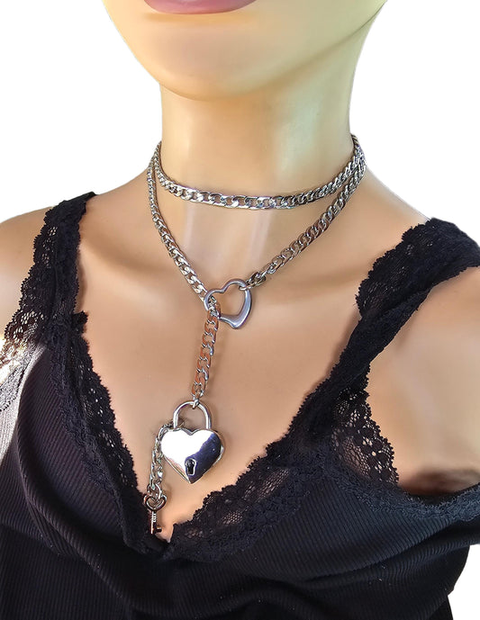 Slip Chain Herz Vorhängeschloss Lariat Kragen Choker geschichtet Halskette | Intimschmuck