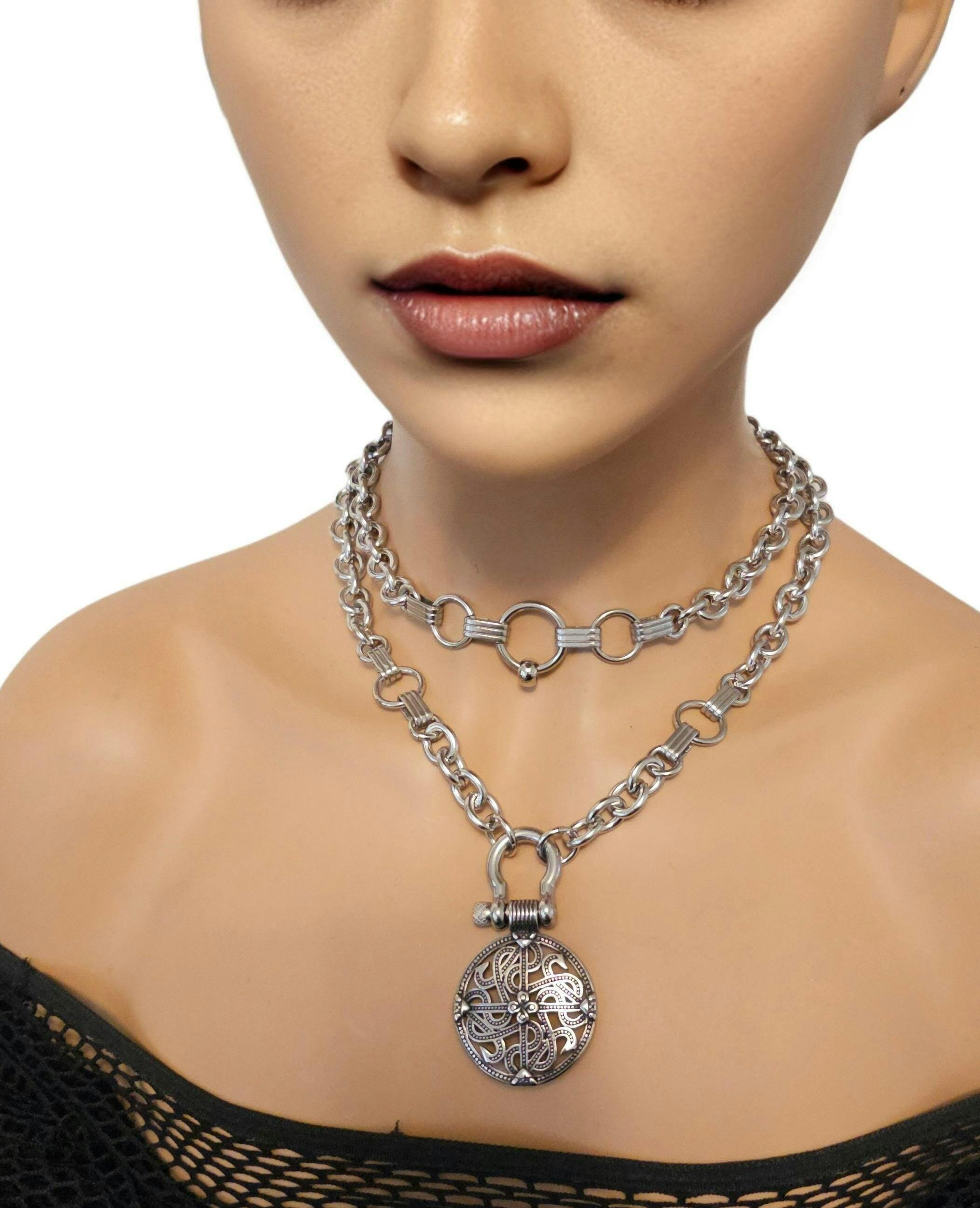 - Ths is two necklaces, the choker and the multi-strand necklace with shackle and dorje vajra pendant.