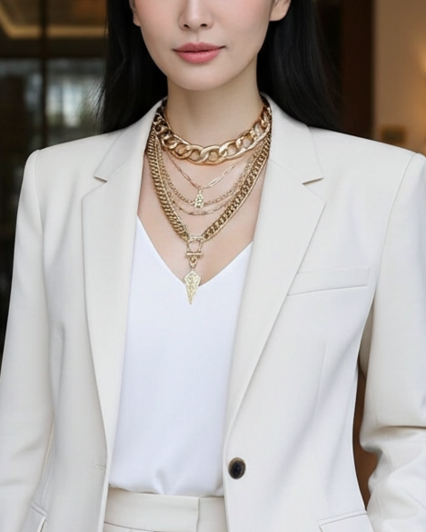 Gold geschichtet Multi Strang klobige Kette Gothic Choker Kragen Halskette Set