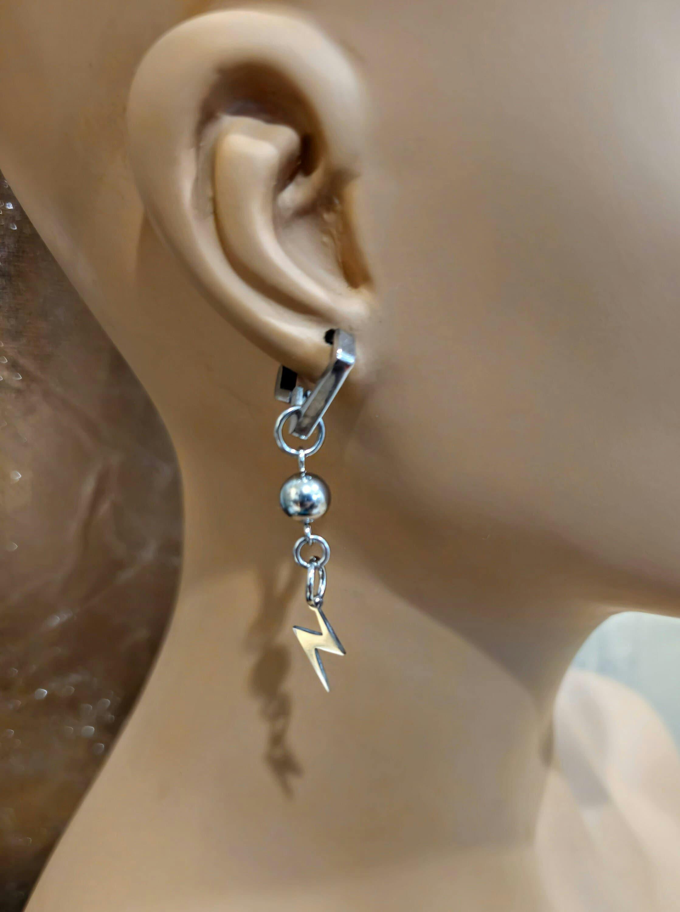 Gothic Ohrringe Large Spike Funky Dangle Earrings on Steel Huggie Hoops, handmade grunge punk, punk earrings, goth jewelry