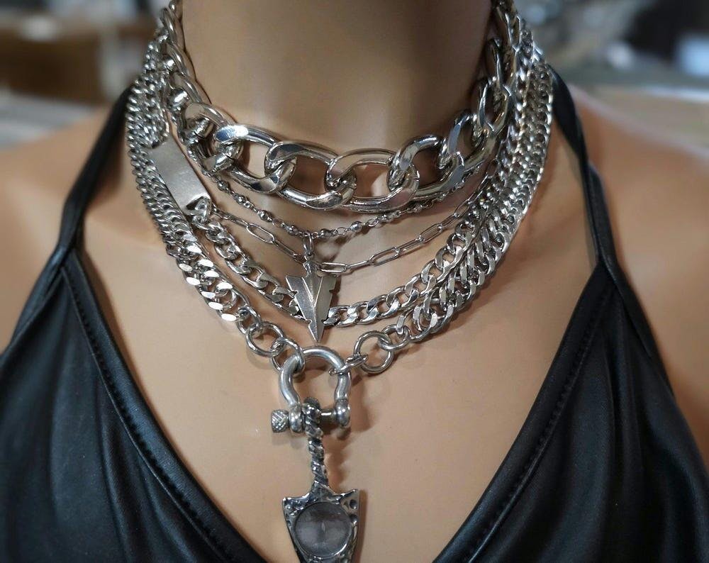 The Valkyrie - Layered Multi Strand Chunky Chain Gothic Choker Kragen Halskette Set