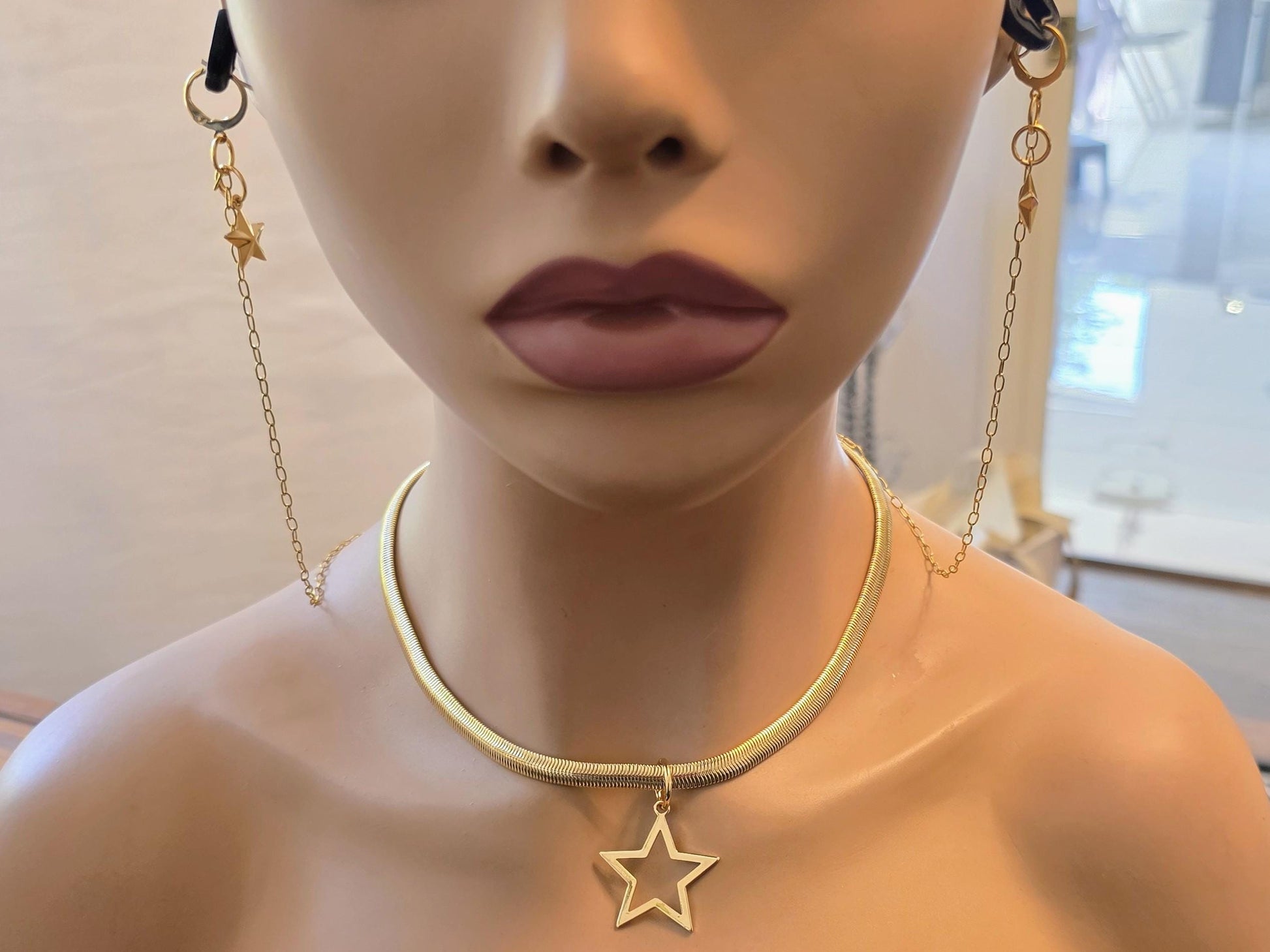 Diese sind eine Schleife Stil Ohrstöpsel Anti-Verlust-Halter-Ketten, die zu jeder Halskette befestigen.