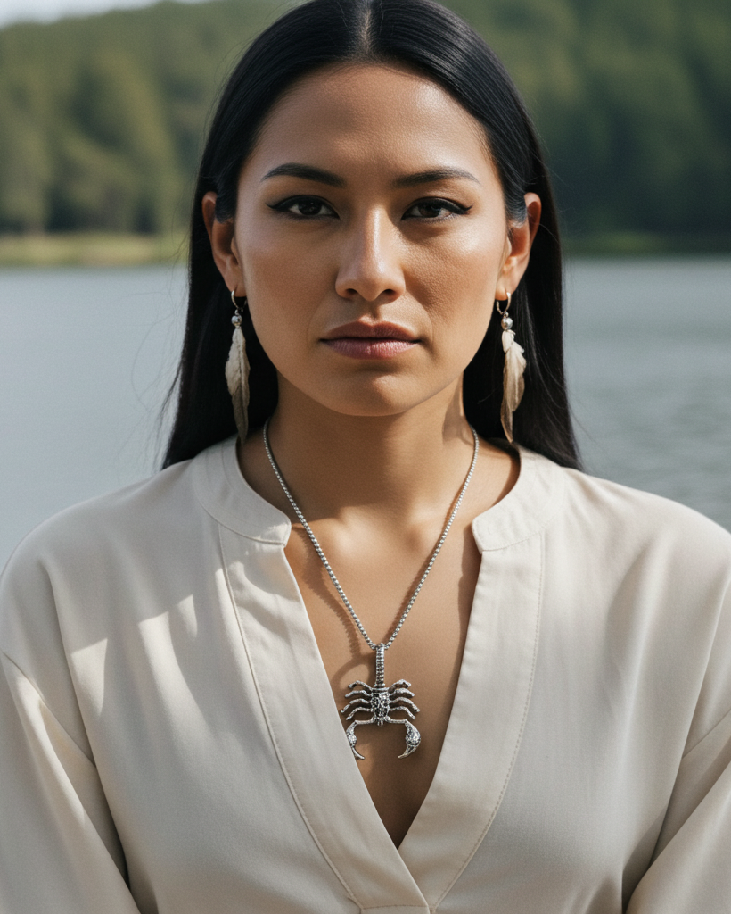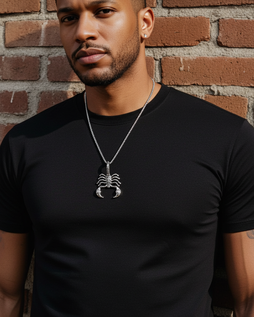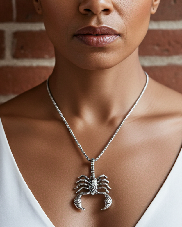 Chunky gothic punk scorpion or scorpio long Pendant necklace.