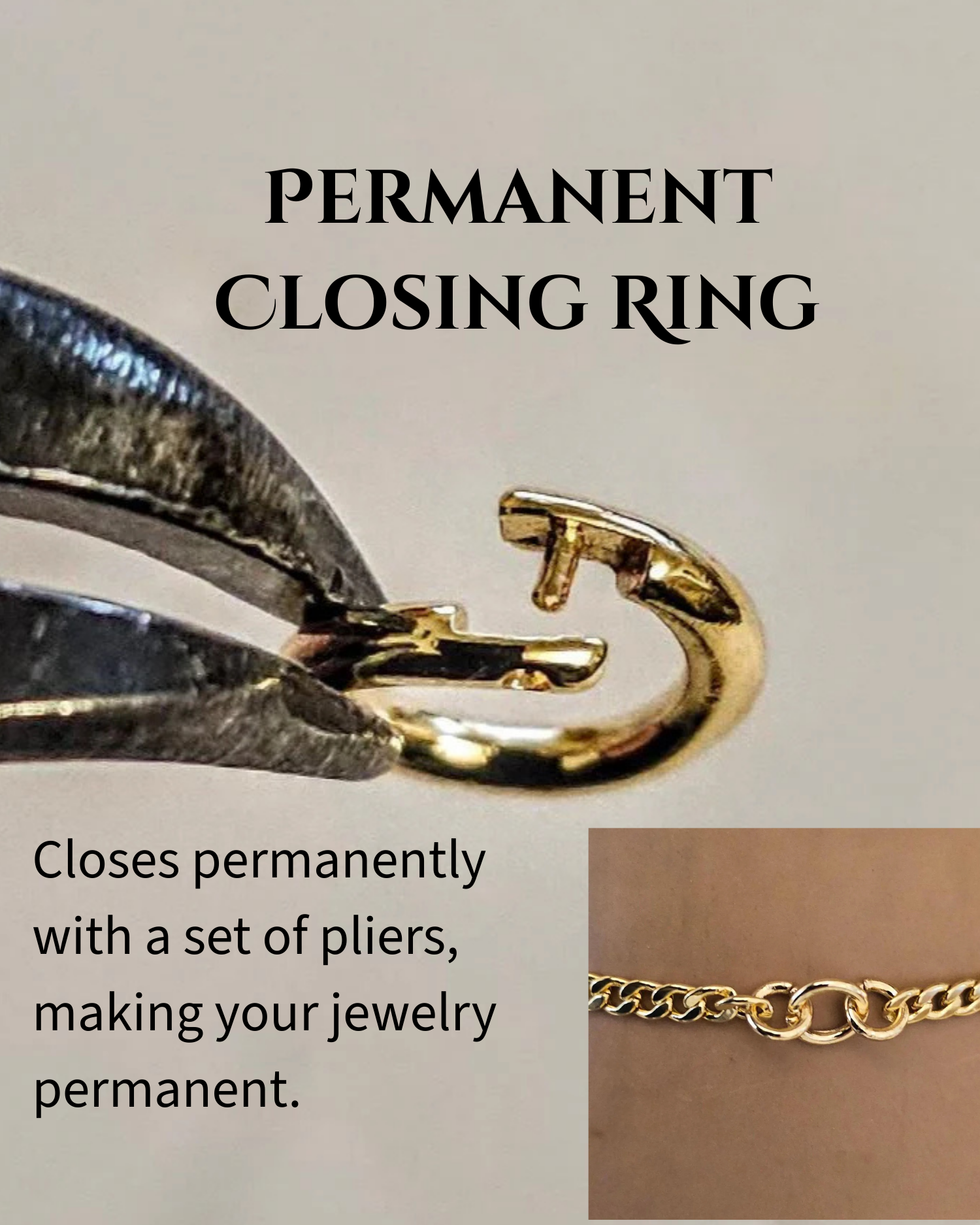 - Choose a regular clasp or a sterling silver permanent locking ring you close yourself with a pair of pliers (not included.)