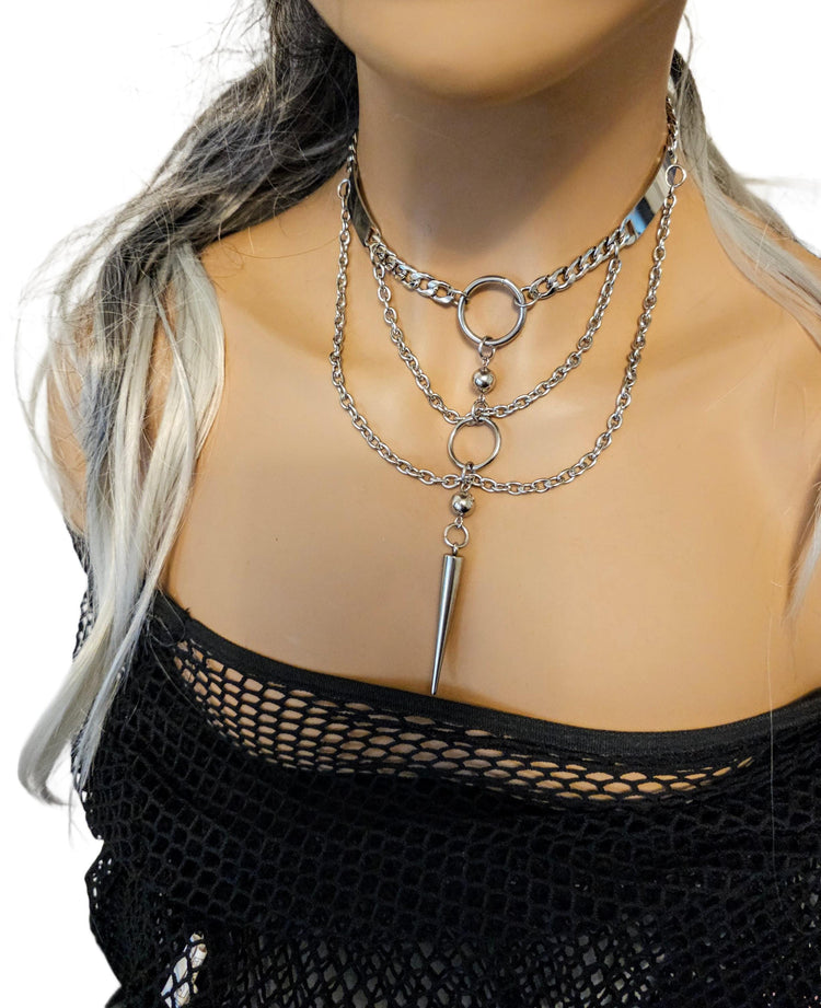 Goth Punk acero en capas Spike Chunky Edgy Multi Strand Chain Necklace Set