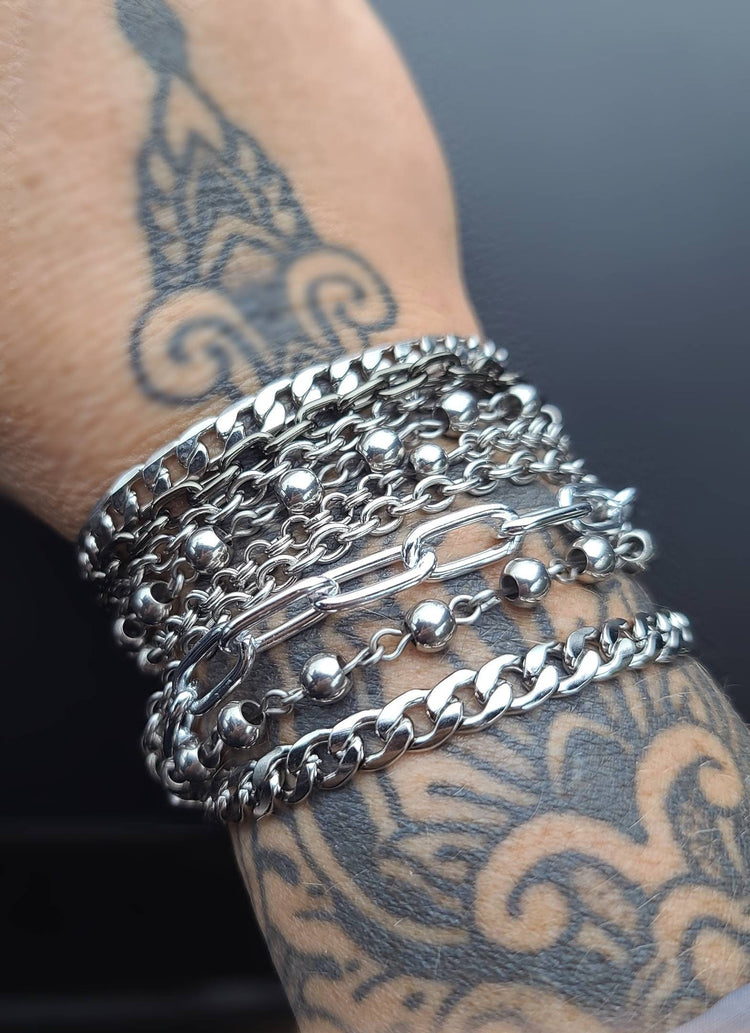 Layered Multi-Strand Steel Bracelet - Esta pulsera de estilo punk o alt goth hace un gran regalo para ella.
