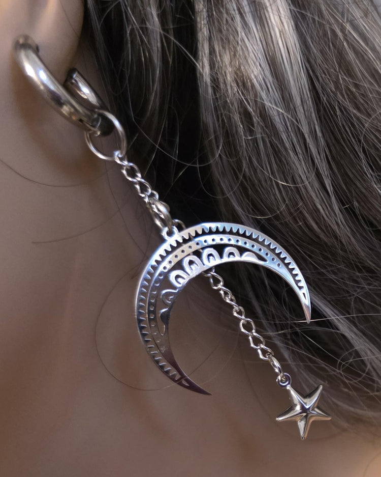 Moon Crescent Star Celestial Witchy Dangle Huggie hoop Earings, todo de acero inoxidable.