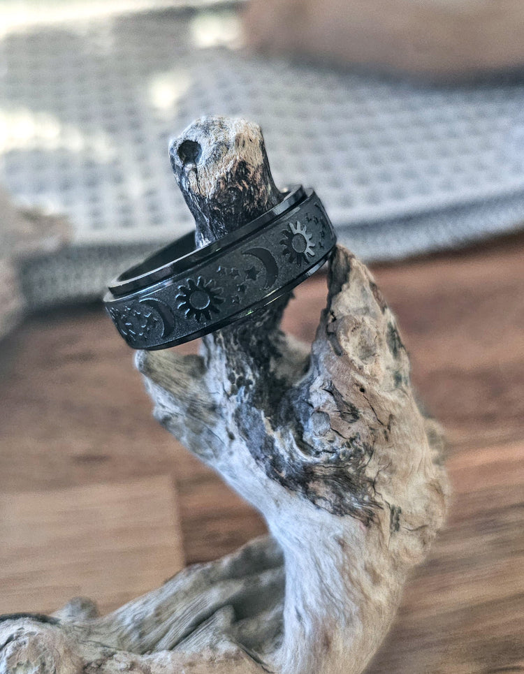 Elegante, duradero y resistente a los arañazos, este anillo está diseñado para almas brujas, observadores de estrellas y aquellos atraídos por la energía celestial. La banda giratoria sutil añade un elemento calmante, fácil de mover, por lo que es a la vez elegante y de conexión a tierra.