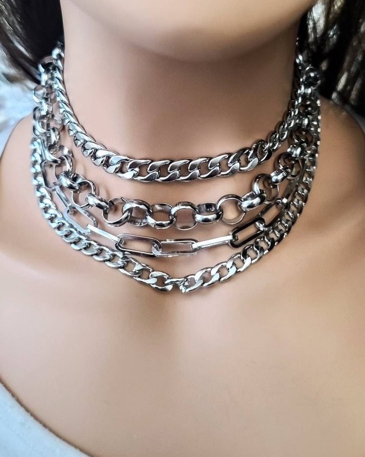 Cadena de plata en capas Gothic Punk Collar Gargantilla Set