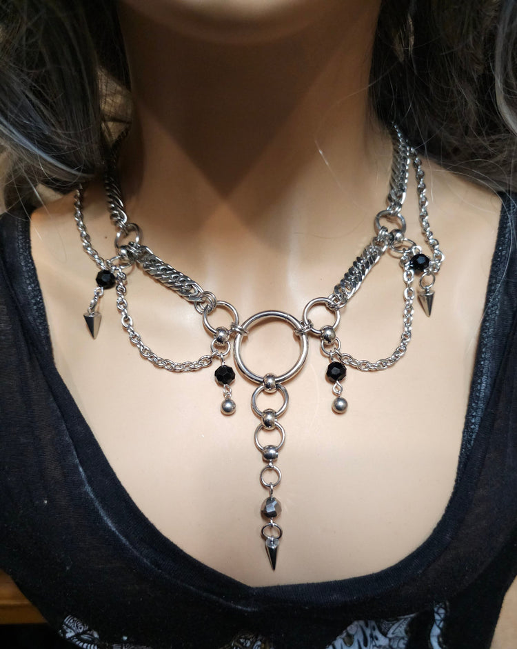 Hecho a mano de acero inoxidable Chunky cadena gótica estilo eduardiano gargantilla en capas collar conjunto, una pieza impresionante de la moda punk alternativa que elevará cualquier equipo con su aspecto audaz y nervioso. Este collar tiene diferentes estilos de cadena y pinchos, y se puede llevar en varias longitudes debido al extensor incorporado. Es de acero inoxidable, por lo que es totalmente impermeable y NUNCA se empañará.