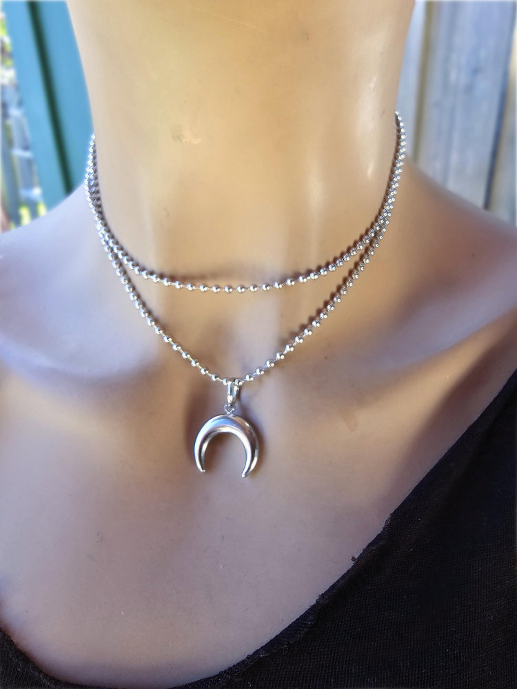 Minimalista cuerno de acero Luna bola de cadena en capas 3-Way Witchy Goth Collar