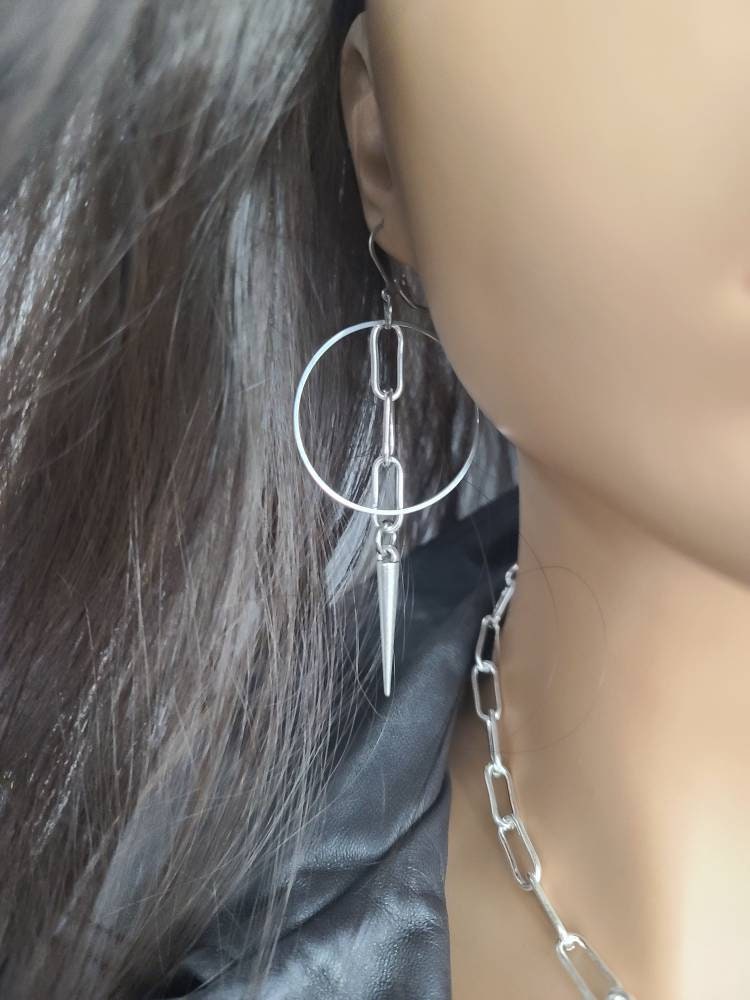 Acero Quirúrgico Espiga y Cadena Estilo Edgy Punk Goth Pendientes