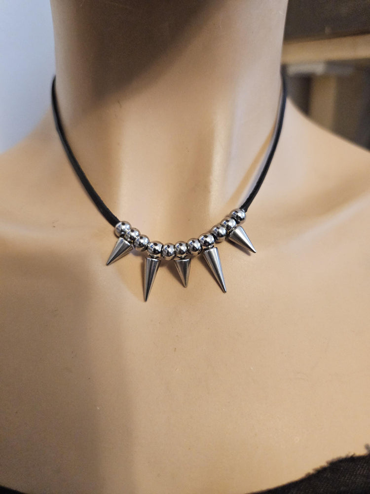 Collier ras du cou Boho Punk en cuir et pointes d'acier avec perles