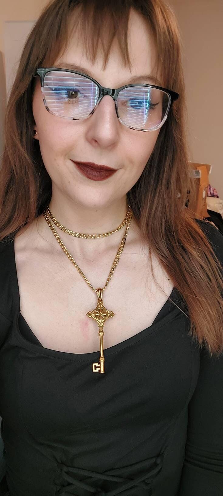 Collana a strati in oro con chiave scheletrica da indossare lunga o corta