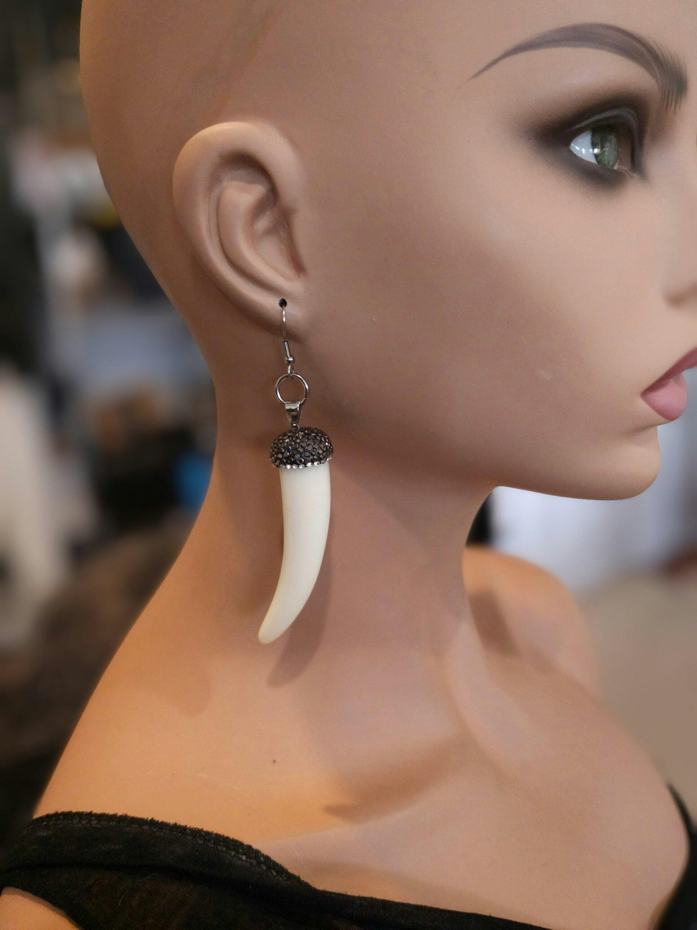Orecchini estetici goth in acciaio chirurgico con zanna in acrilico. Sono completamente impermeabili e non si appannano. Grande regalo per lei o per lui, gioielli goth, orecchini punk, gioielli grunge, gioielli emo, gioielli occulti, gioielli pagani.