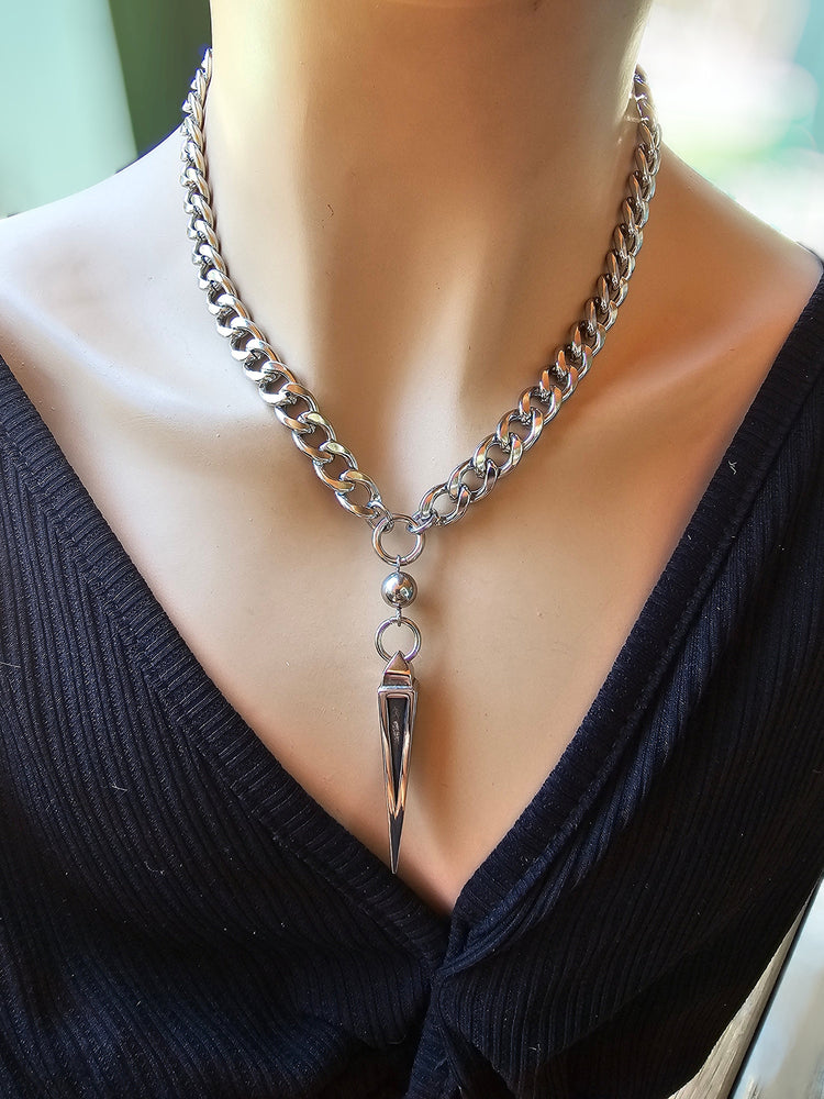 Collana in acciaio a spigoli grossi in stile punk gotico