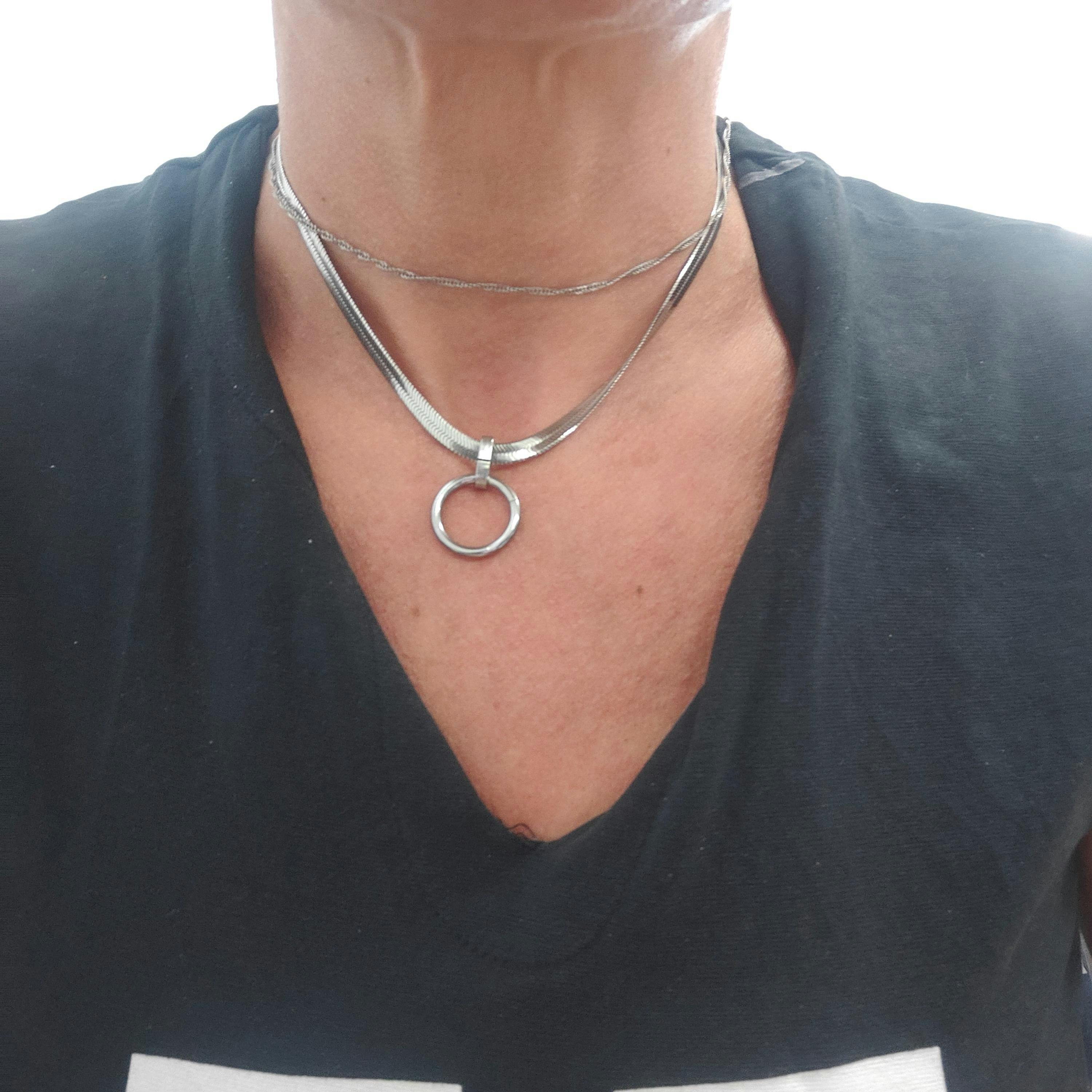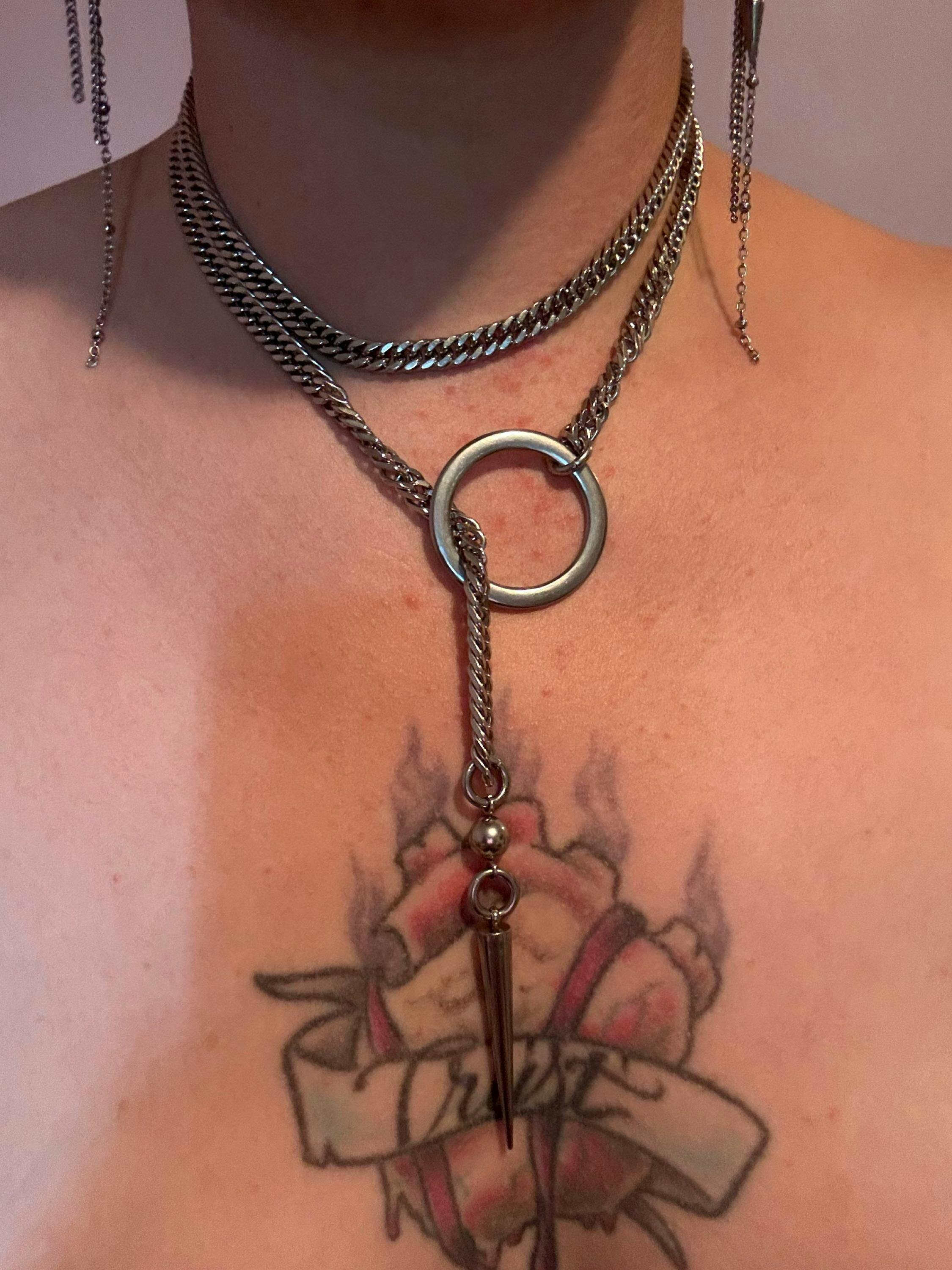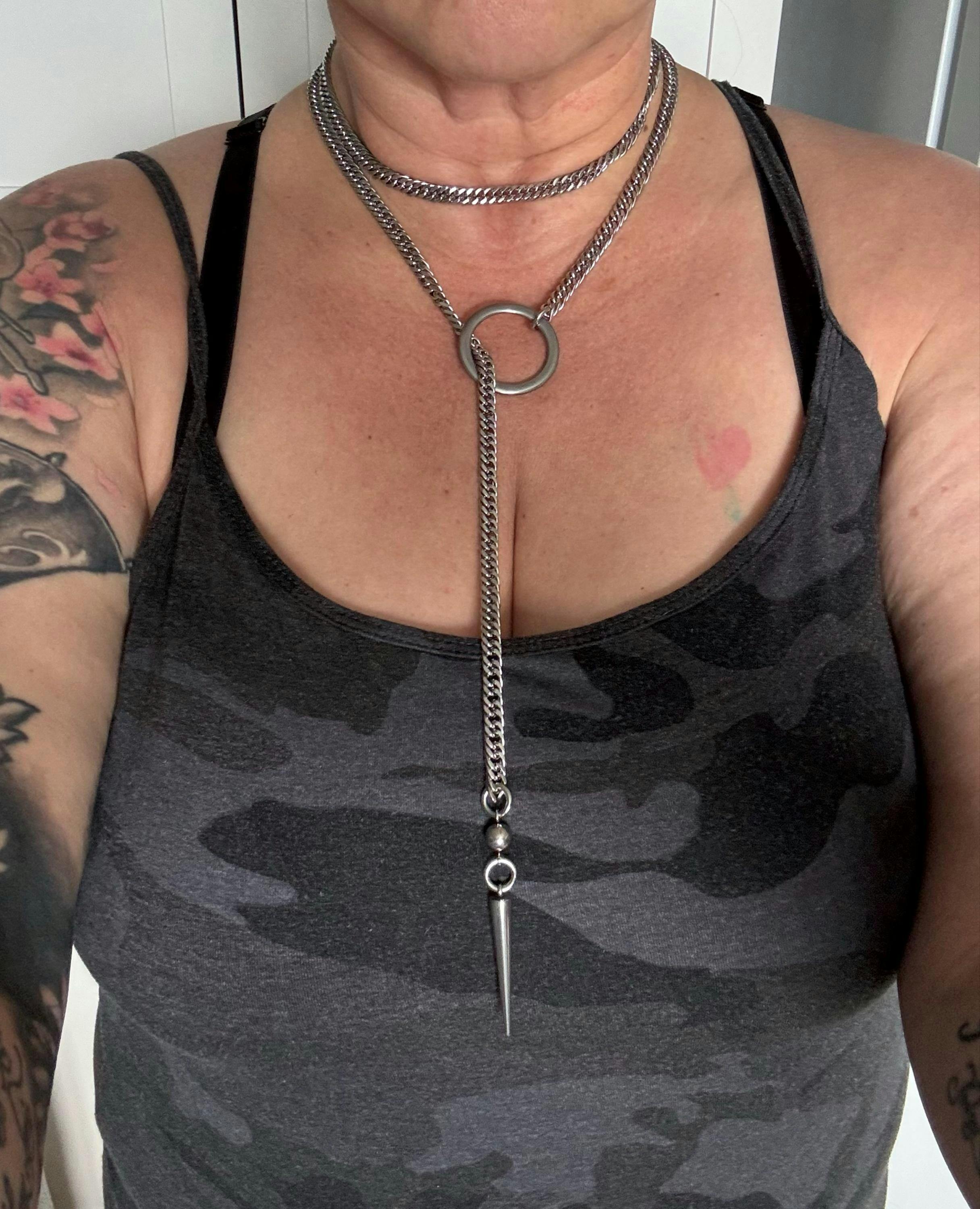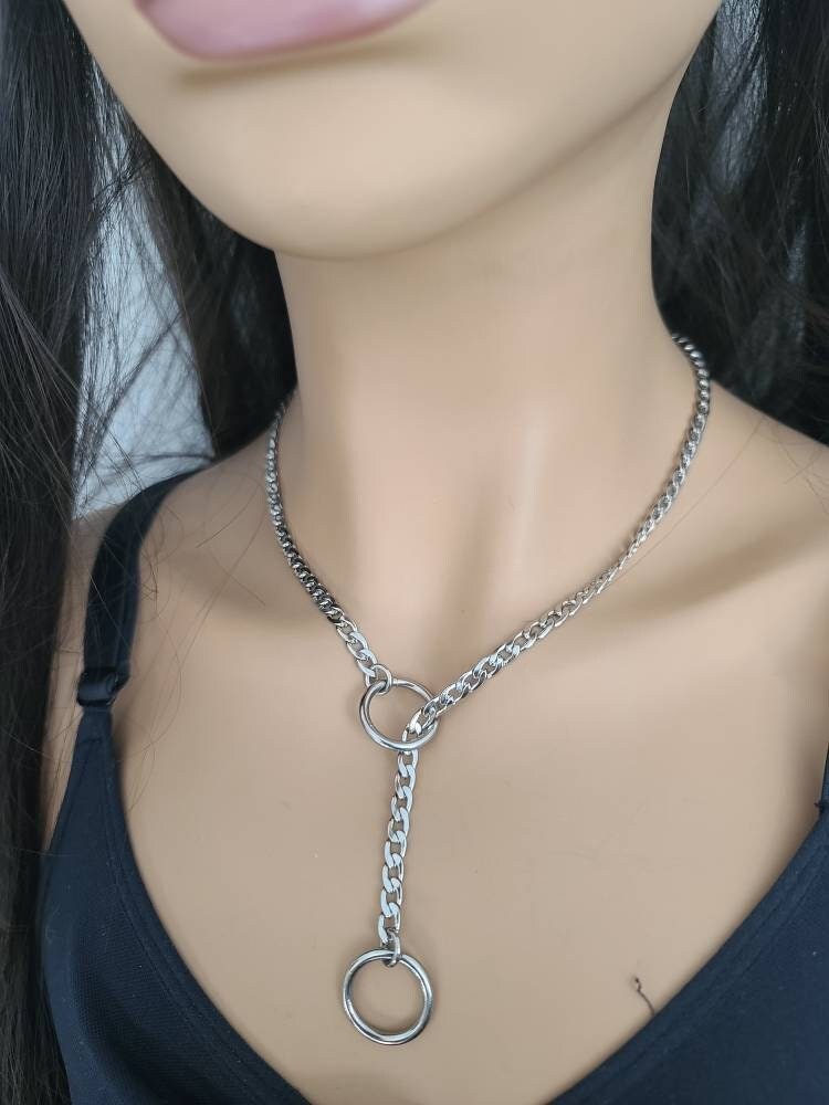 Si tratta di una catena a scorrimento con doppio O Ring 24/7 Discreet Sub Collar Bondage Style BDSM collare collana choker, tutto in acciaio inox con chiusura posteriore del collo. Essendo in acciaio inox resistente, può sopportare leggeri strattoni. Un grande regalo per lei, un collare choker goth sottomesso. Può essere dotato di una chiusura normale, di una chiusura esagonale bloccabile o di una chiusura a chiave con occhiello per renderlo permanente.
