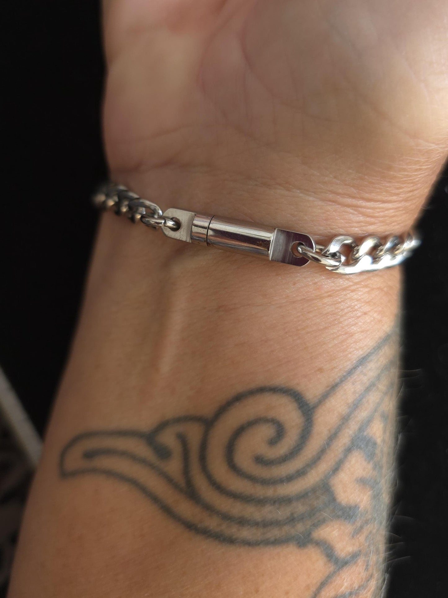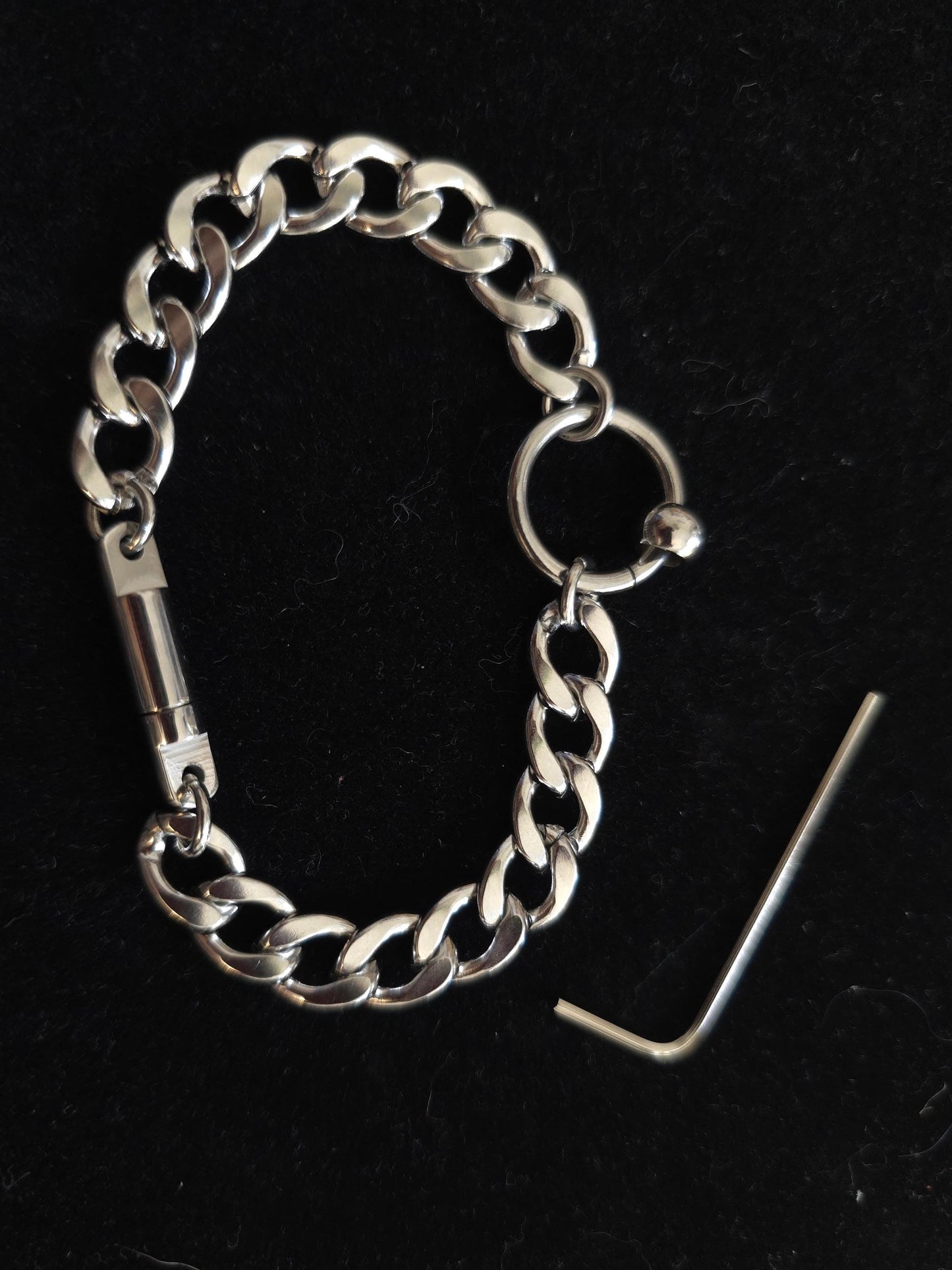 This is an elegant and discreet O-Ring Submissive Style Day Collar bracelet in 100% stainless steel with locking Key Clasp. This bracelet gives a wonderful intimate message!
