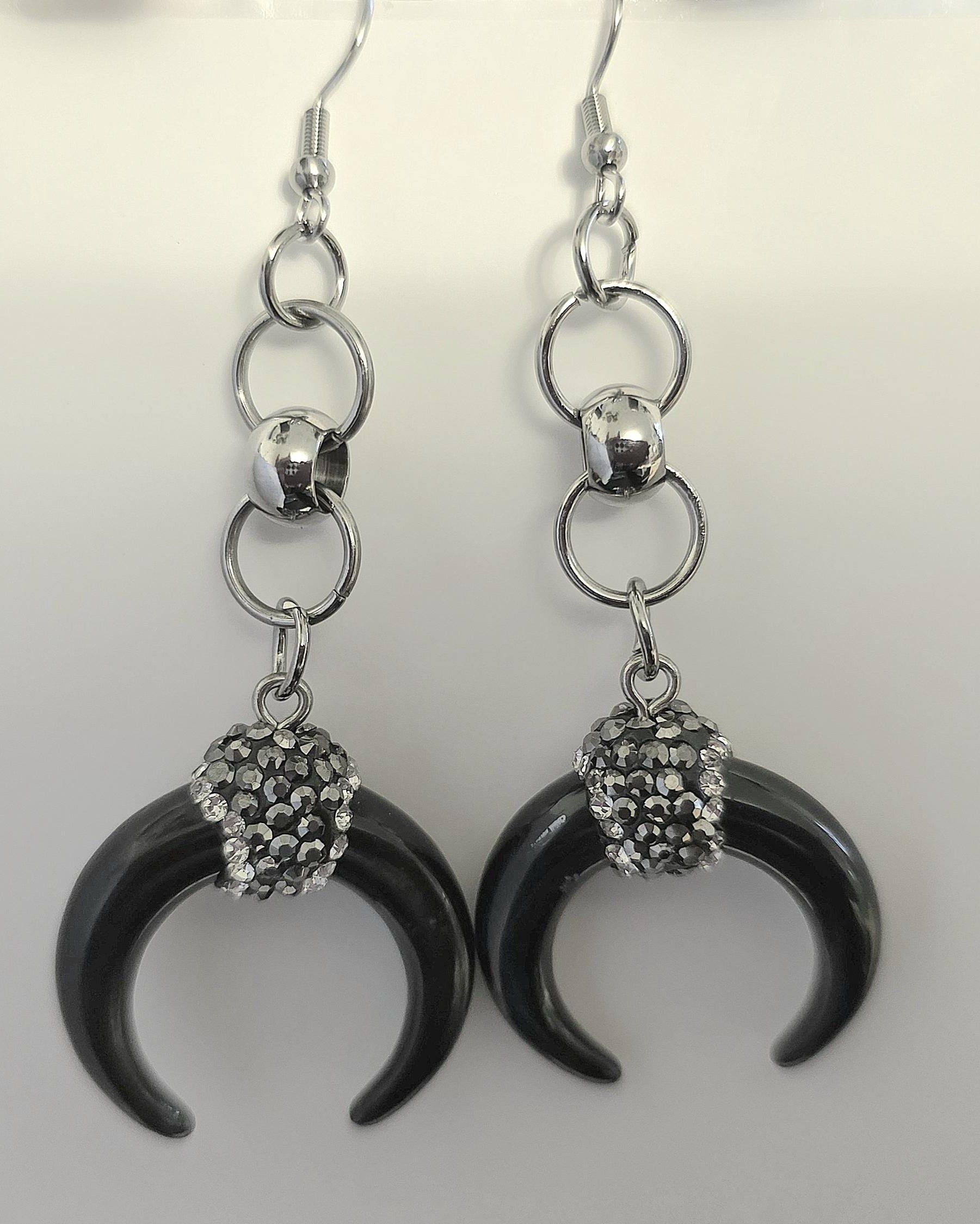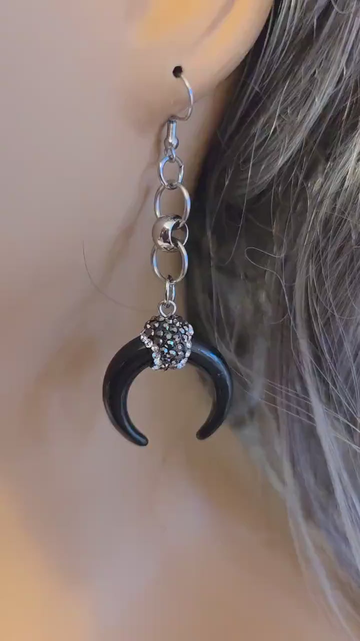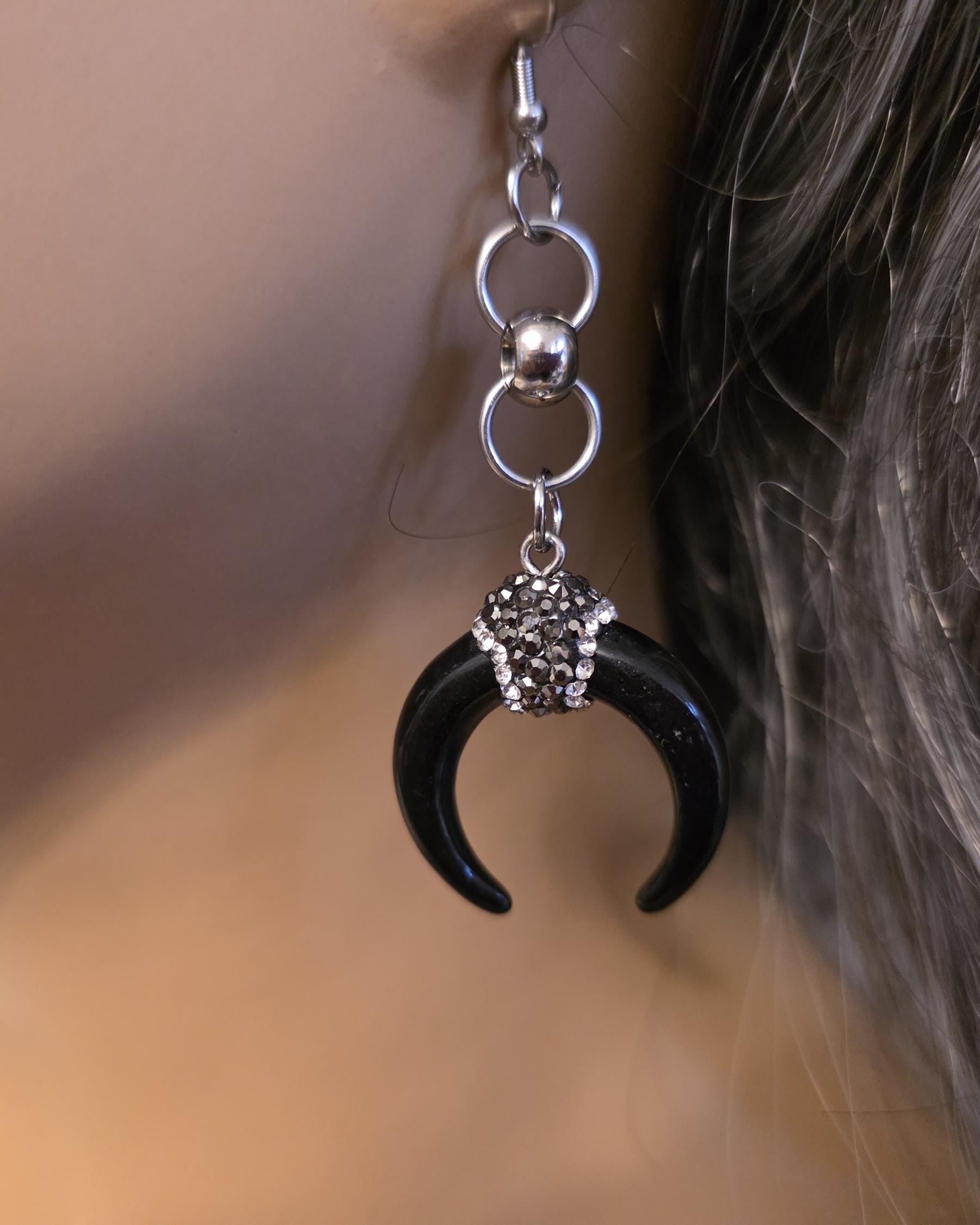 Double Horn Moon Witchy Funky Dangle Earrings on Steel ear Wires.