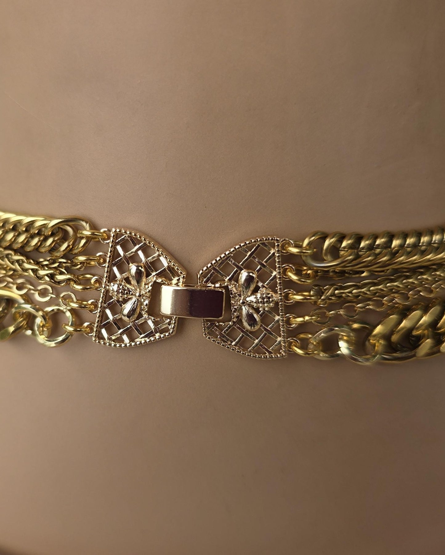 Gold Layered Multi Strand Chunky Chain Pharoah Evil Eye Pendant Necklace Set