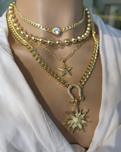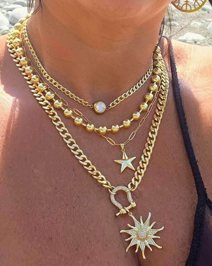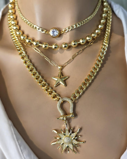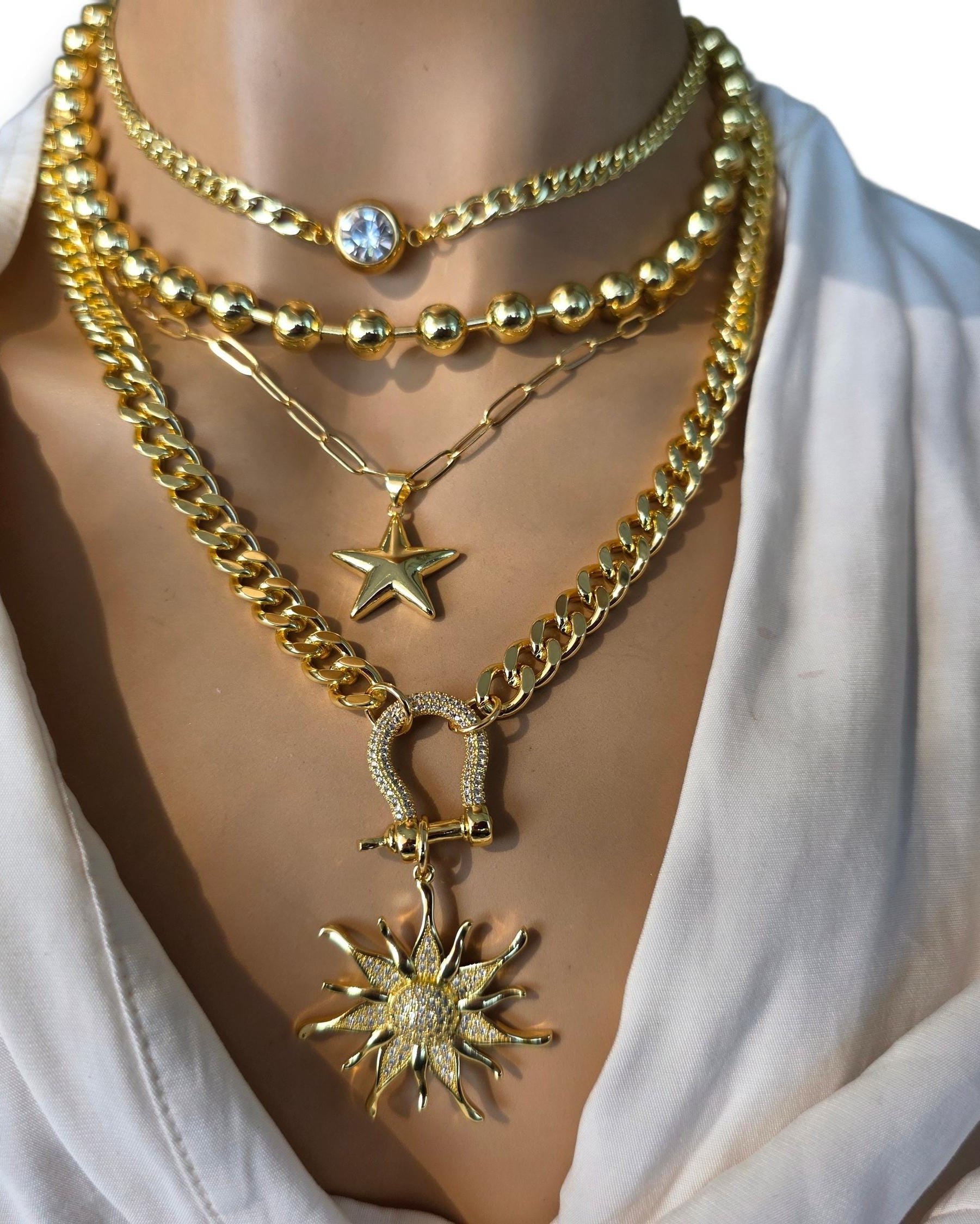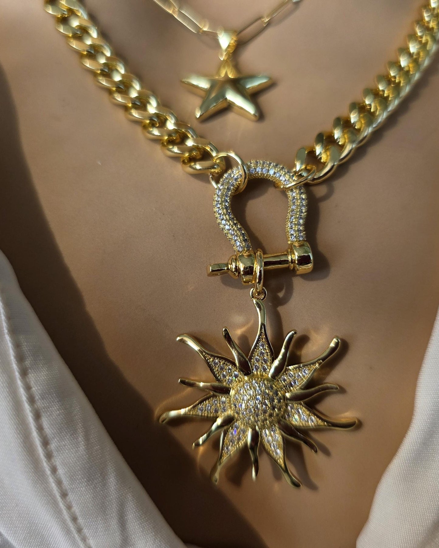 "Sól Rises" - Gold Layered Multi Strand Chunky Chain Sun Star Pendant Necklace Set