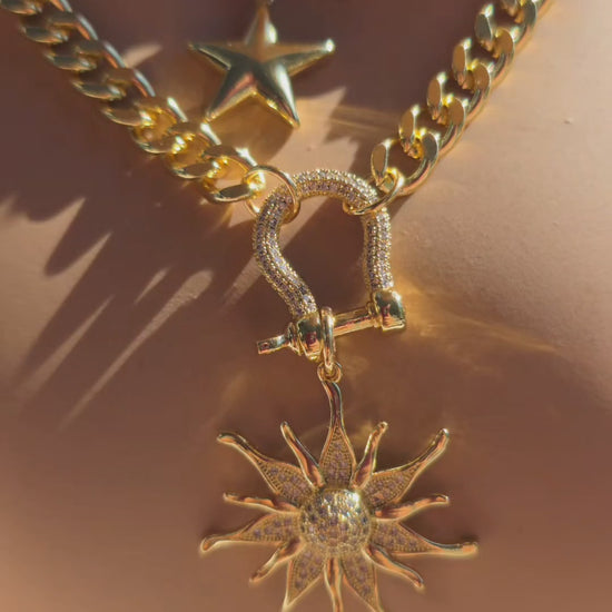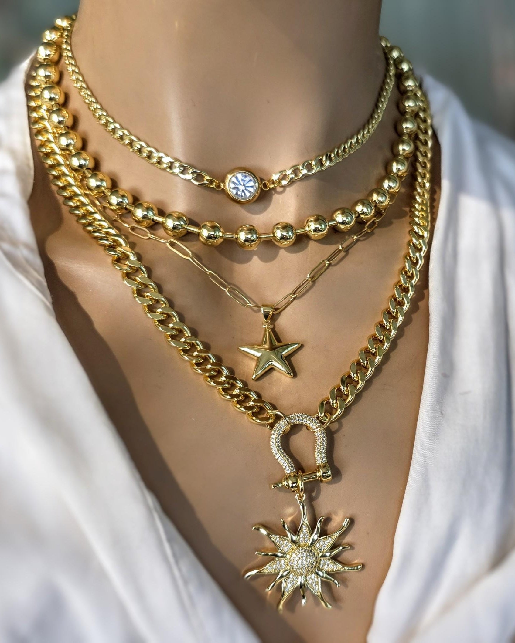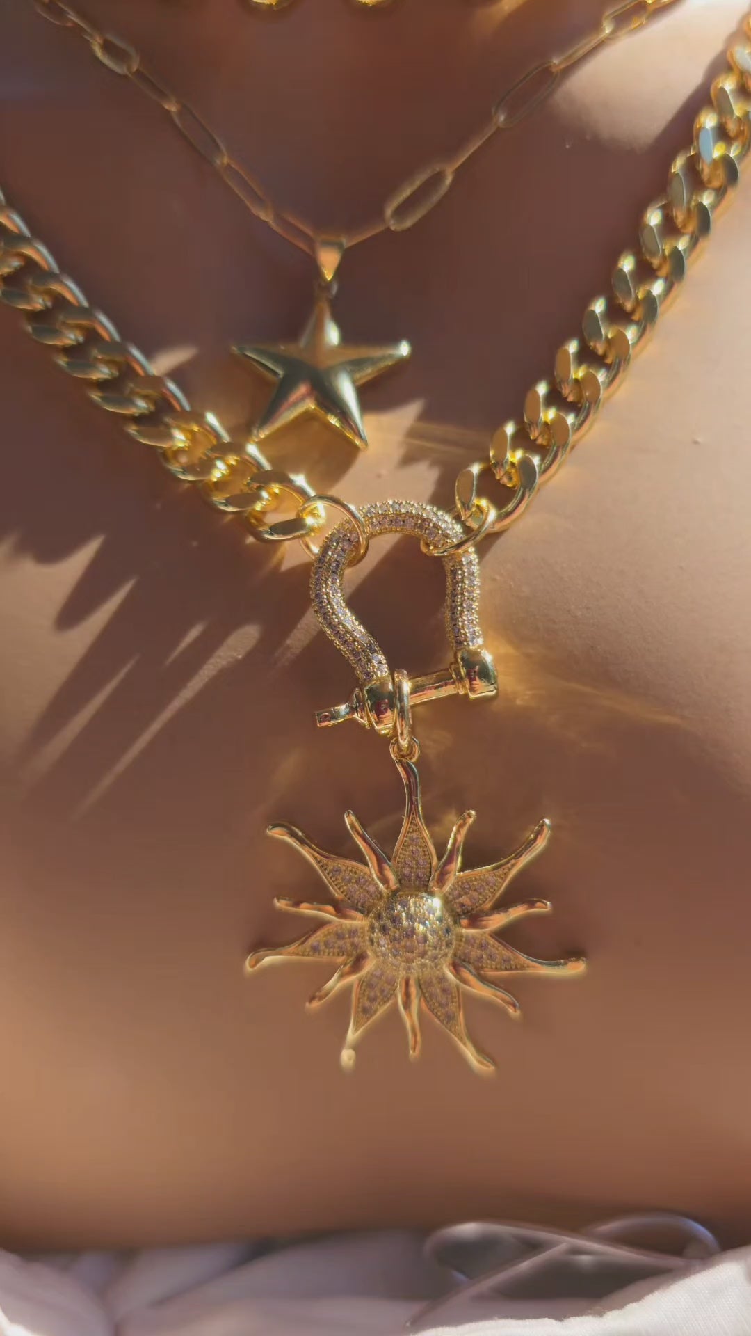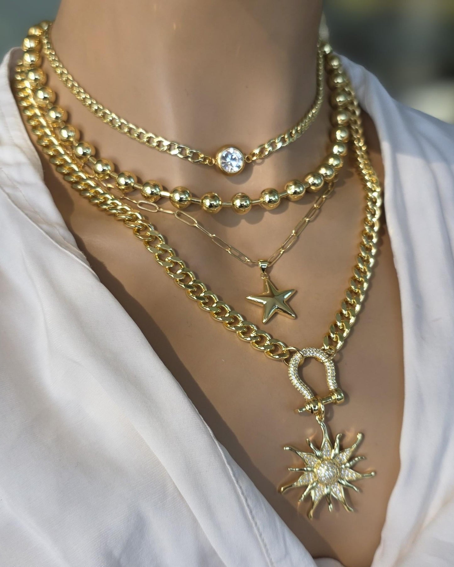 "Sól Rises" - Gold Layered Multi Strand Chunky Chain Sun Star Pendant Necklace Set