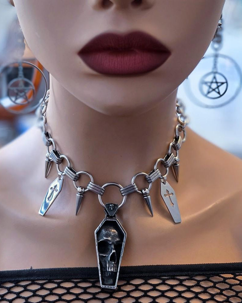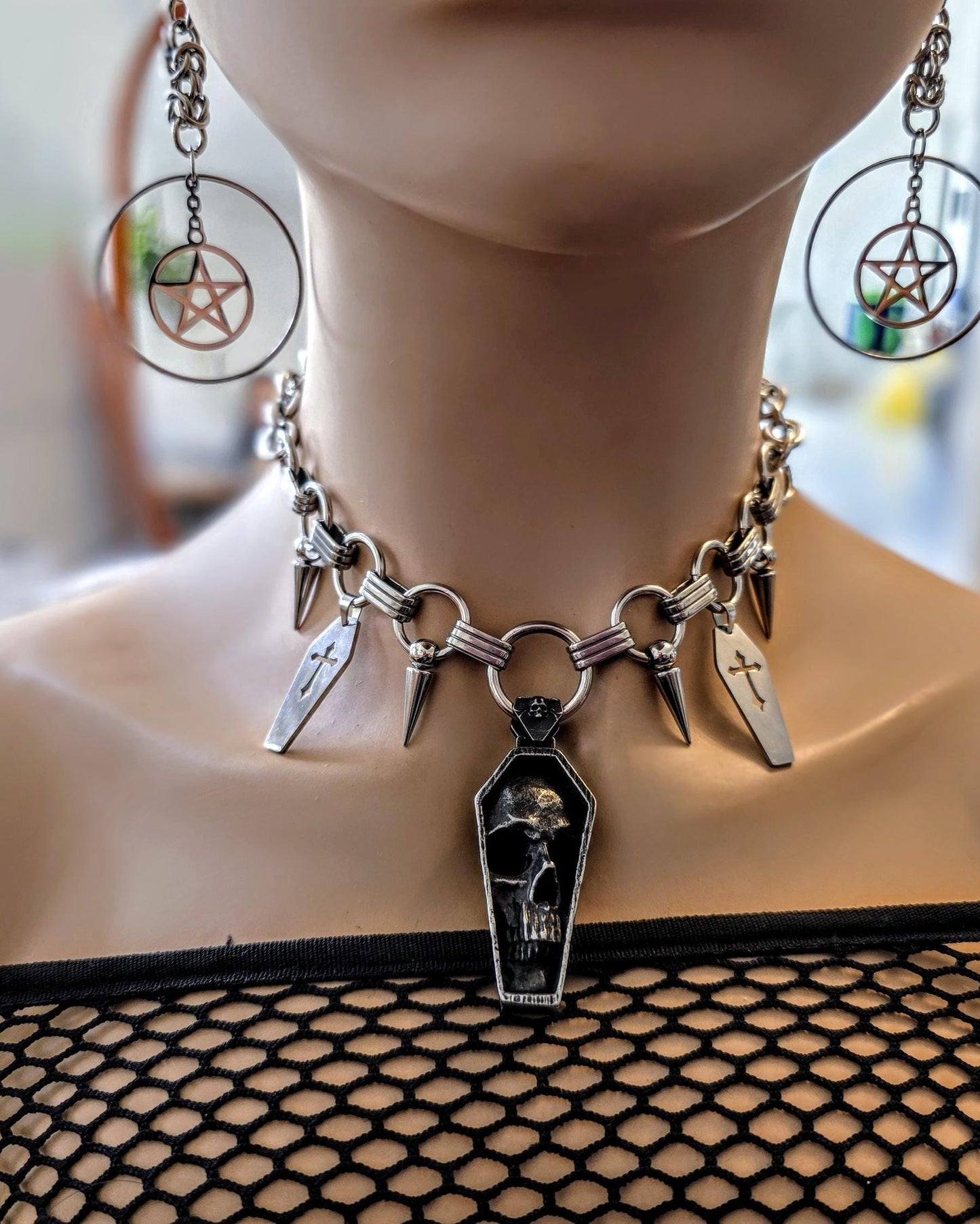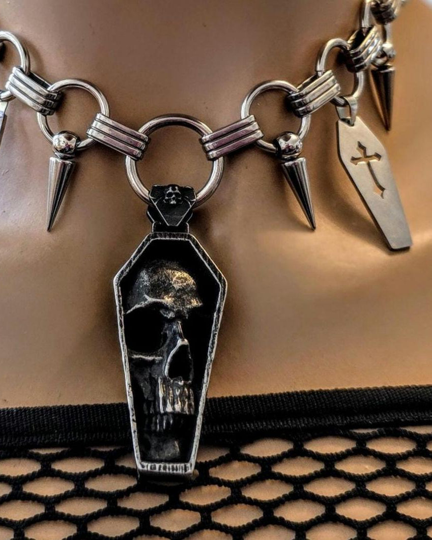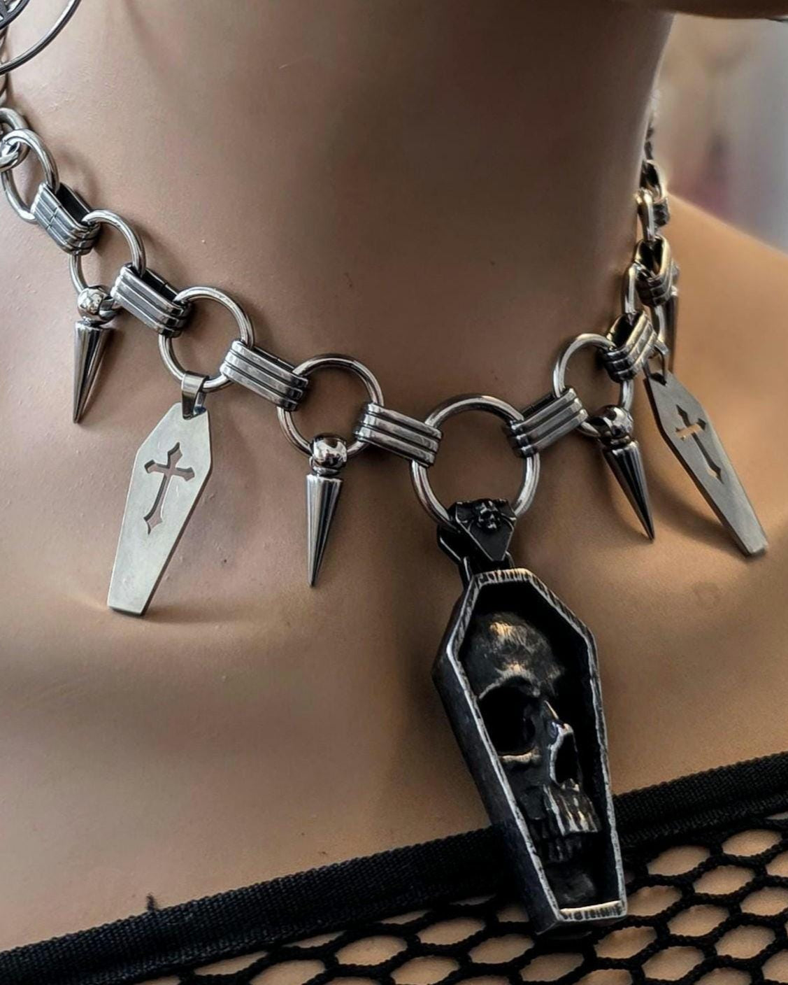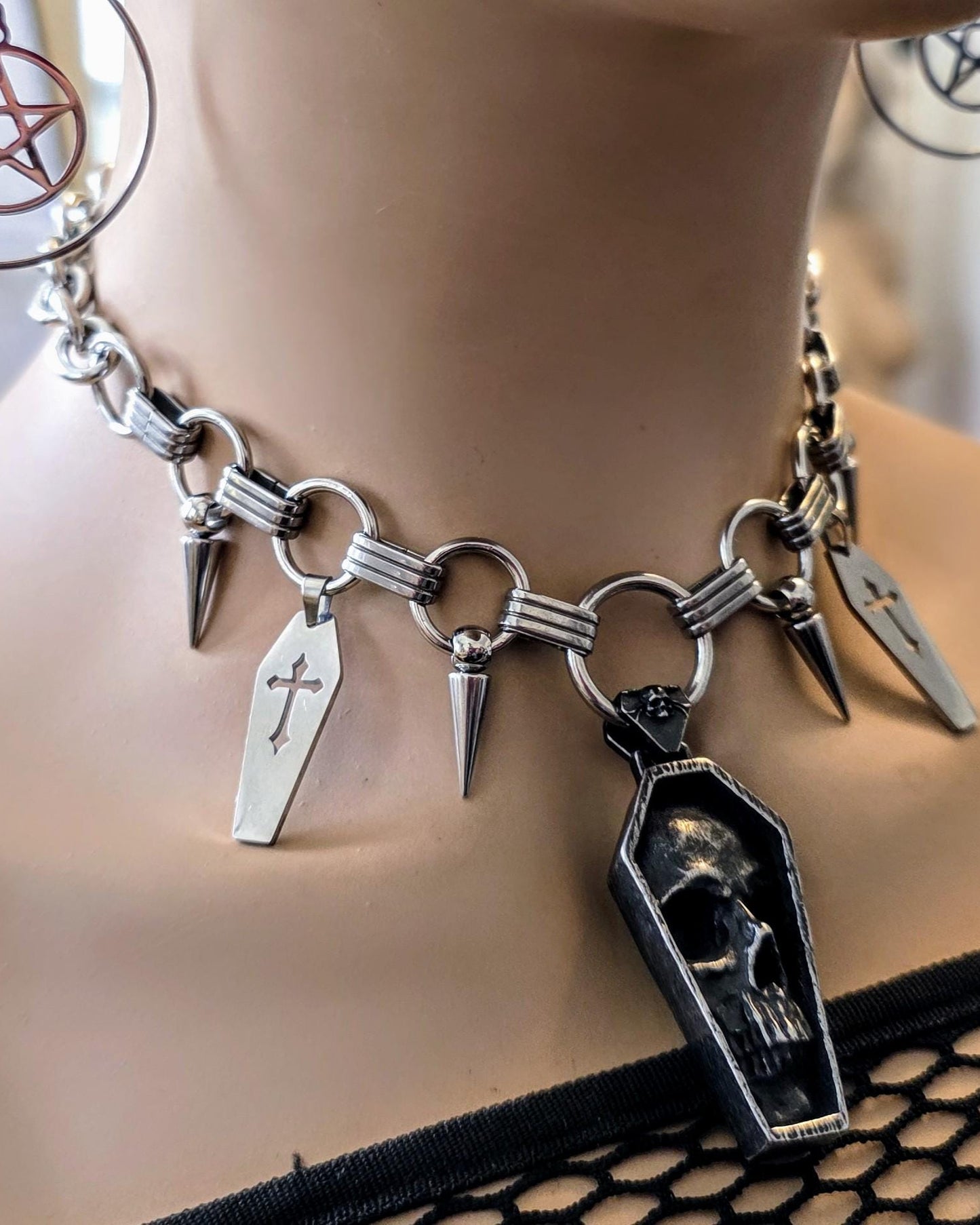 Coffin Gate to Valhalla - Gothic Punk Coffin Skeleton Choker Goth pendant Necklace | Occult Aesthetic