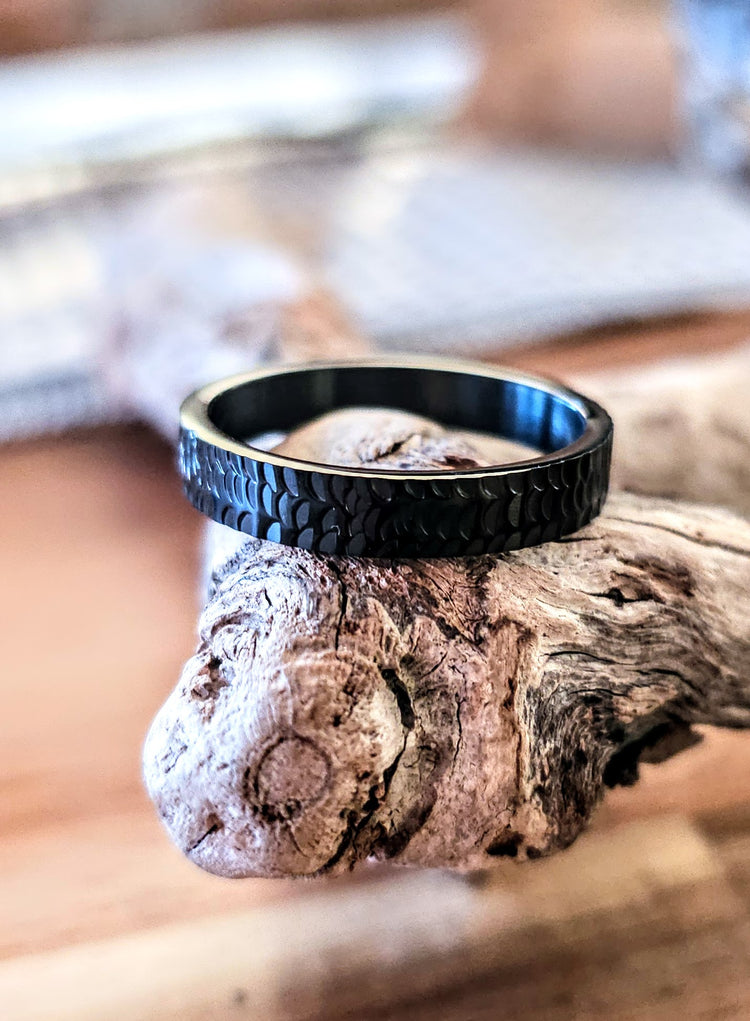 Mini Dragon’s Hoard Ring – Black Steel Dragon Scale Band