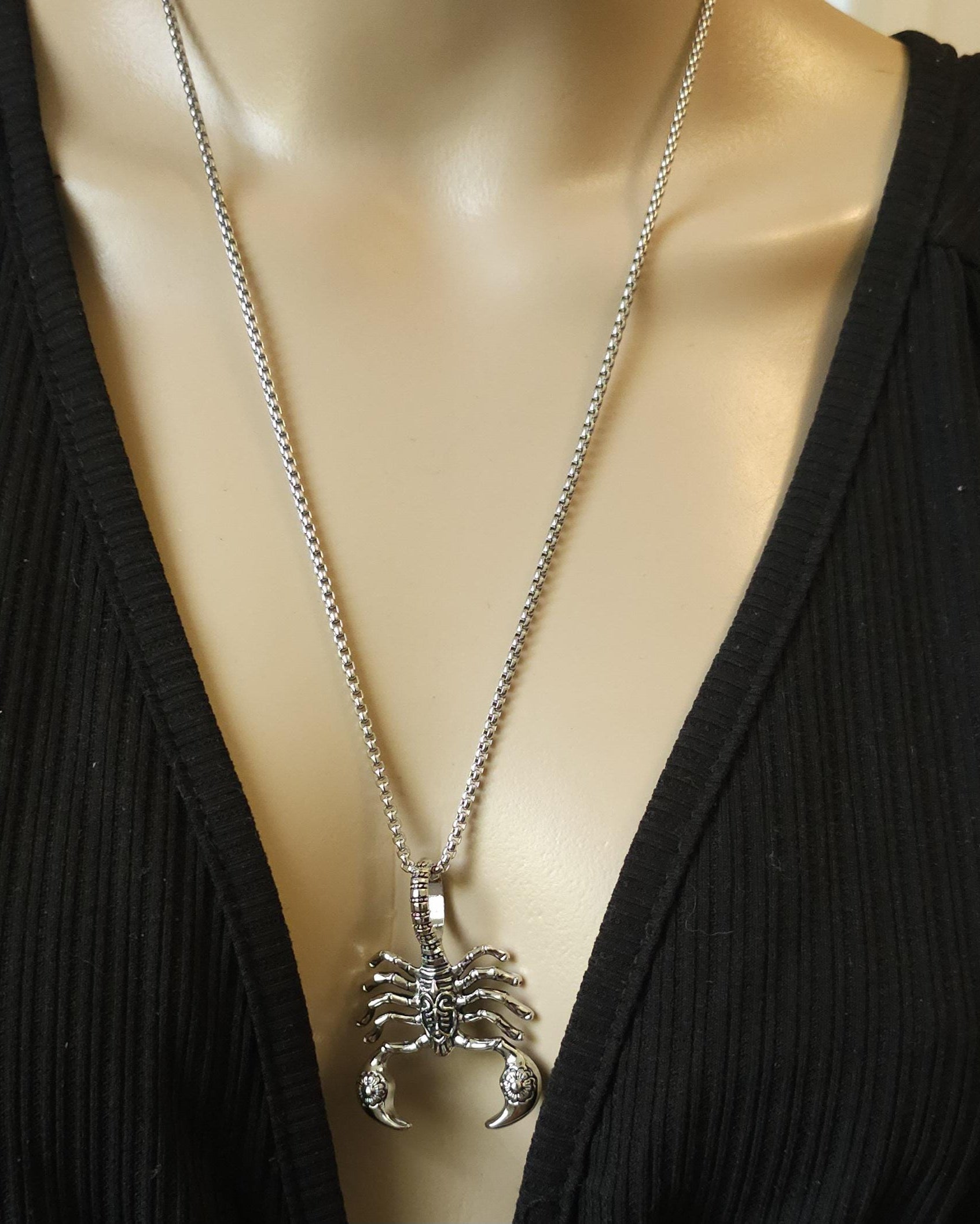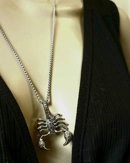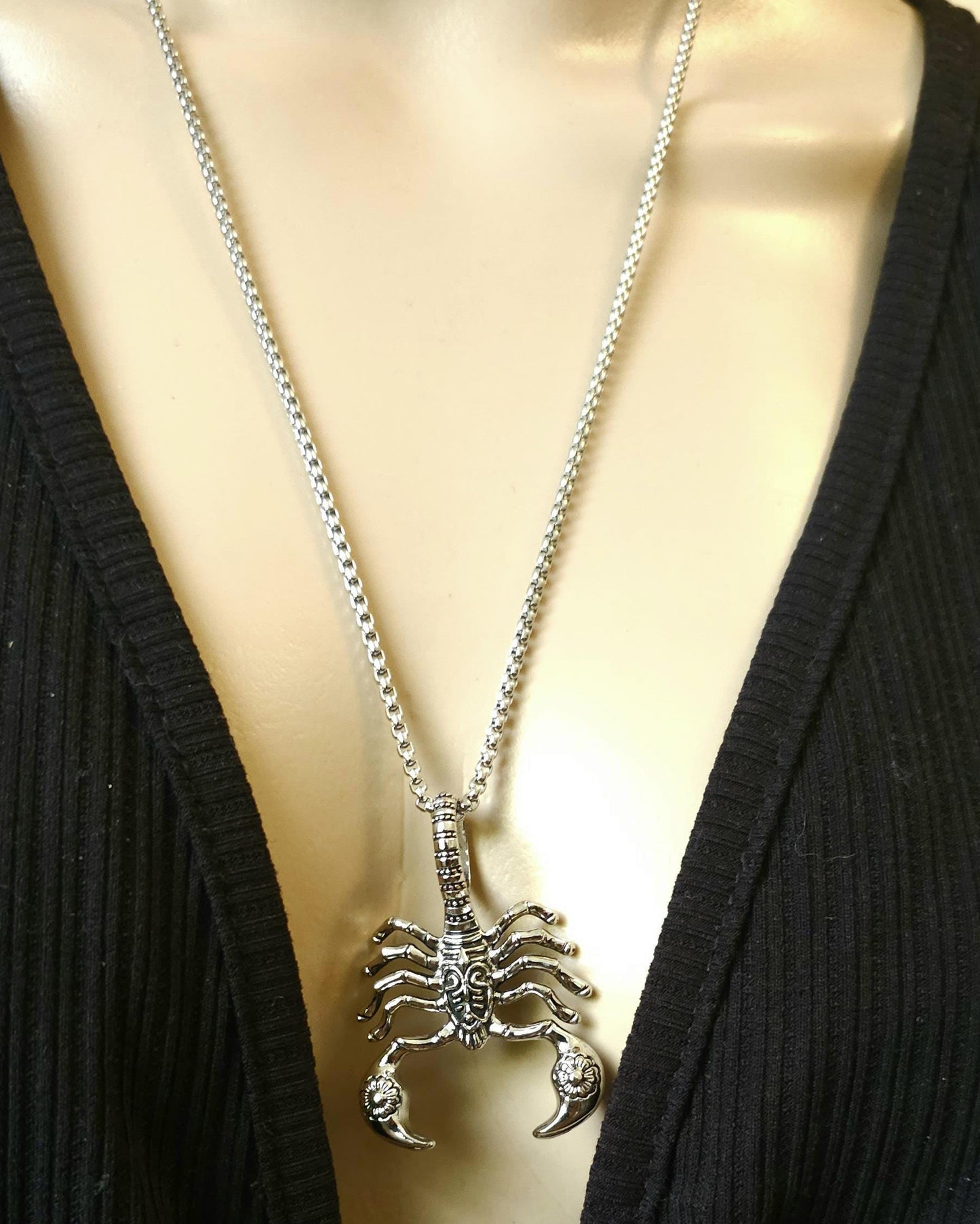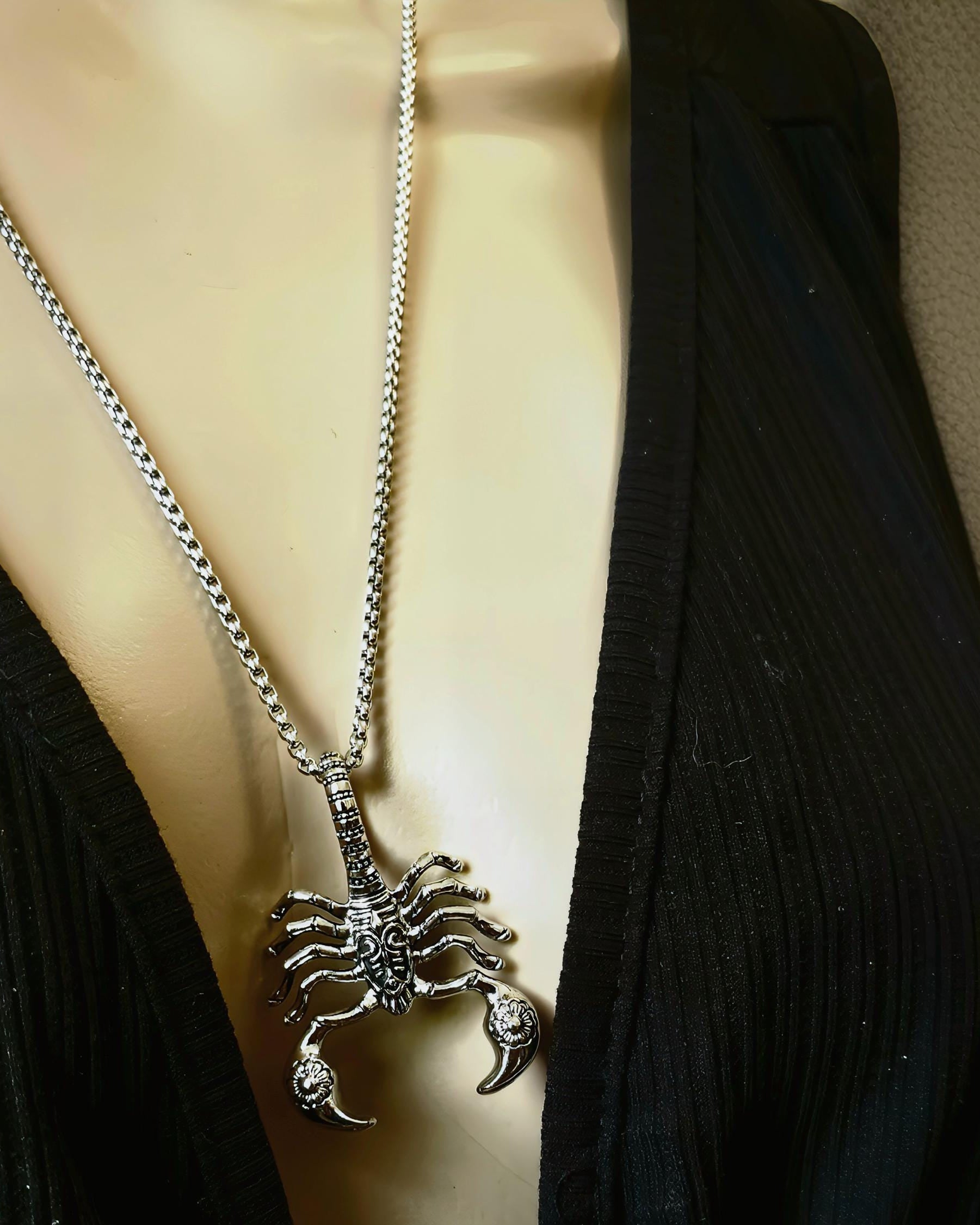 Chunky gothic punk scorpion or scorpio long Pendant necklace.