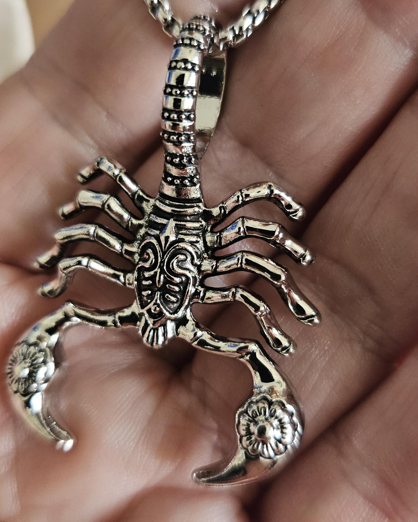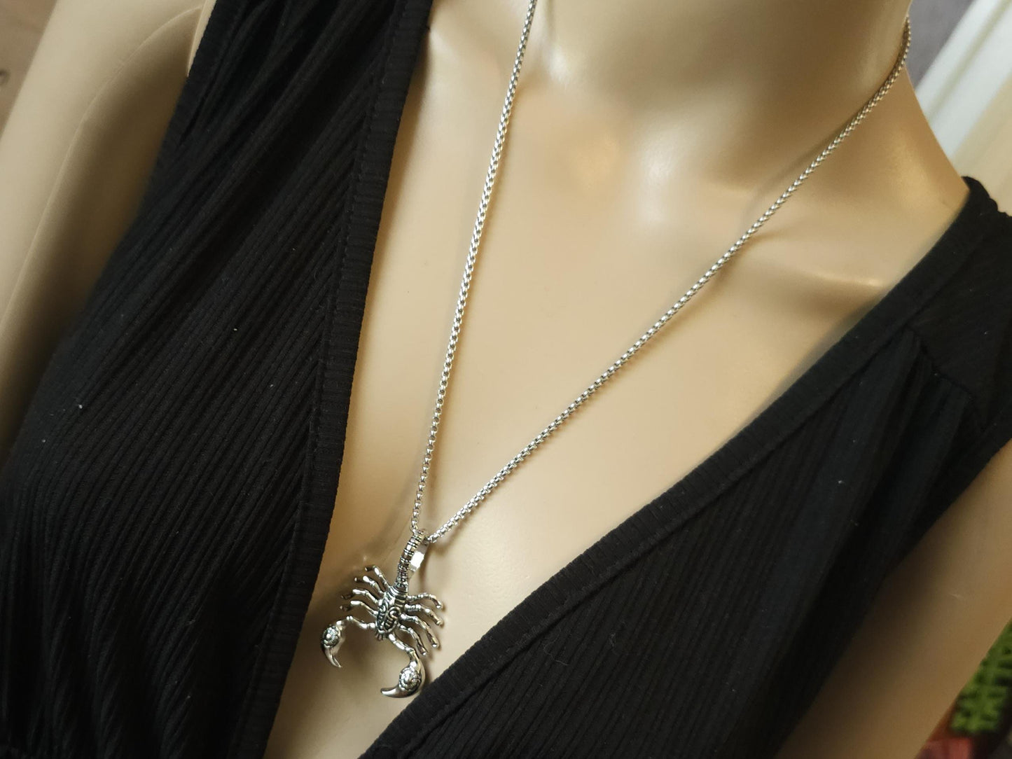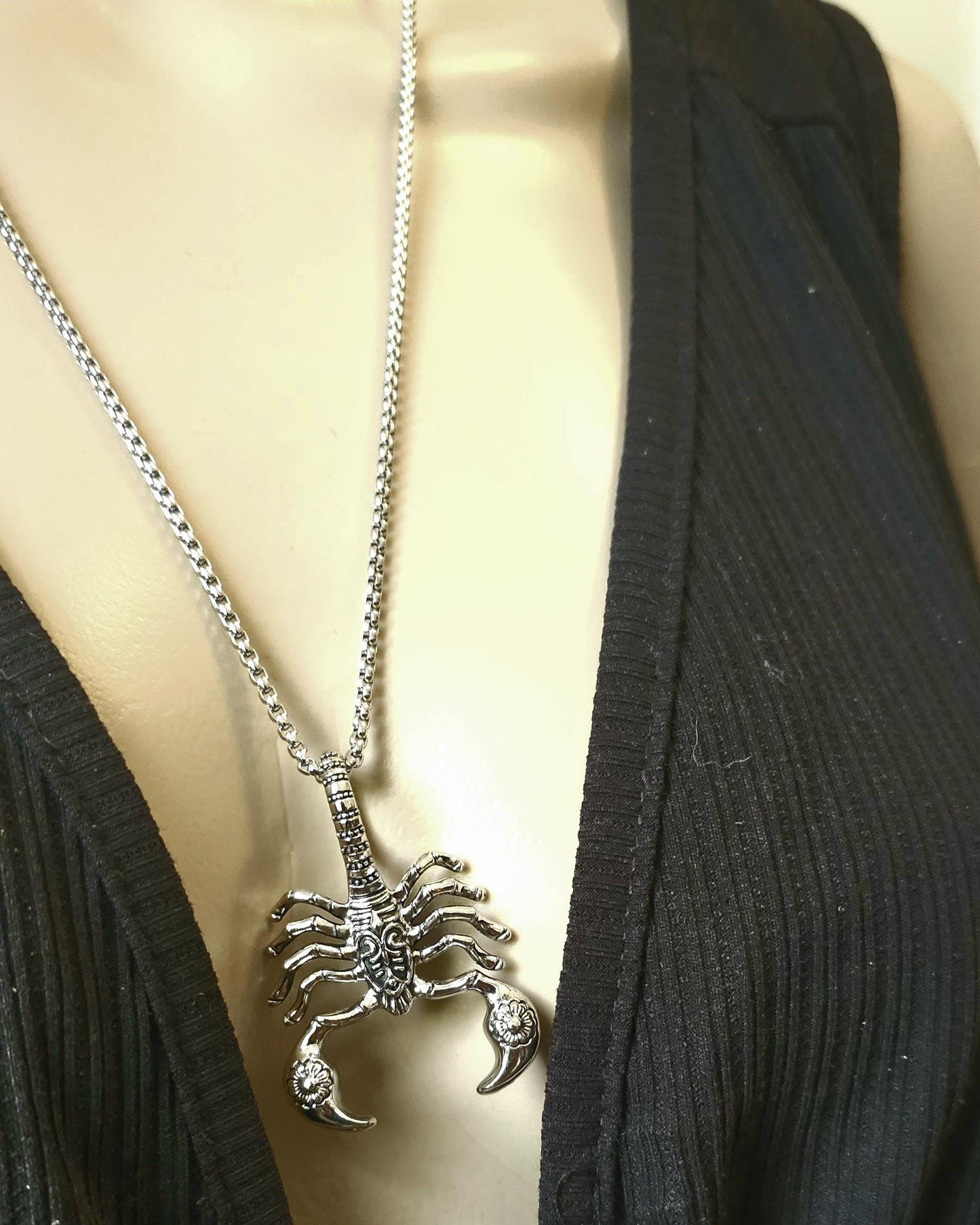 Chunky gothic punk scorpion or scorpio long Pendant necklace.