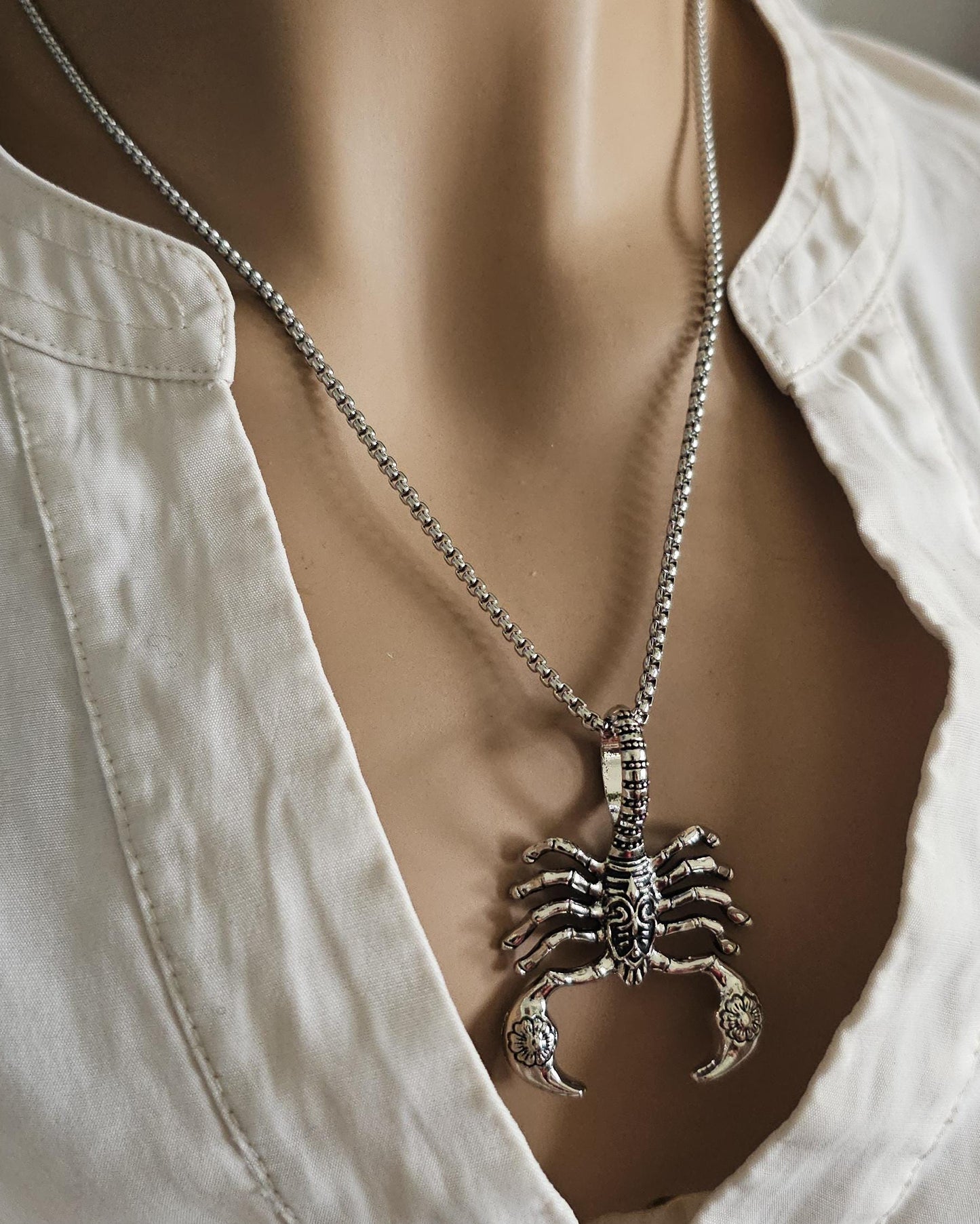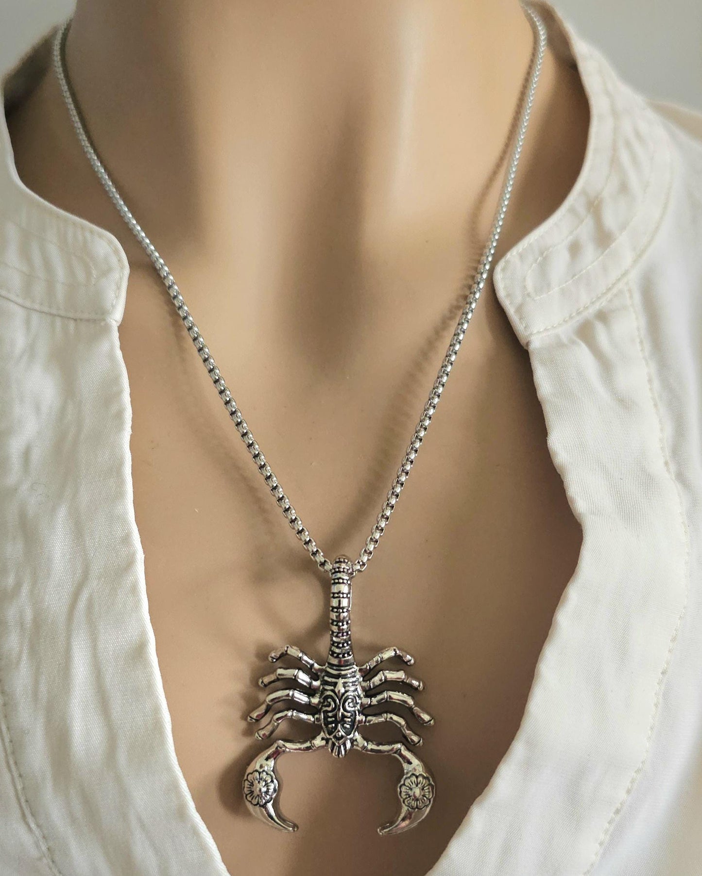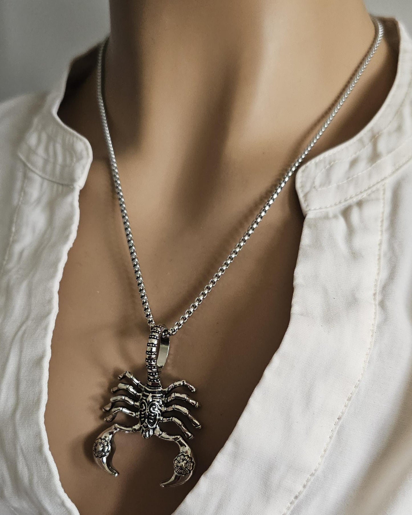 Scorpion Scorpio Steel Edgy Mens or Womens Chunky Punk Aesthetic Pendant Necklace