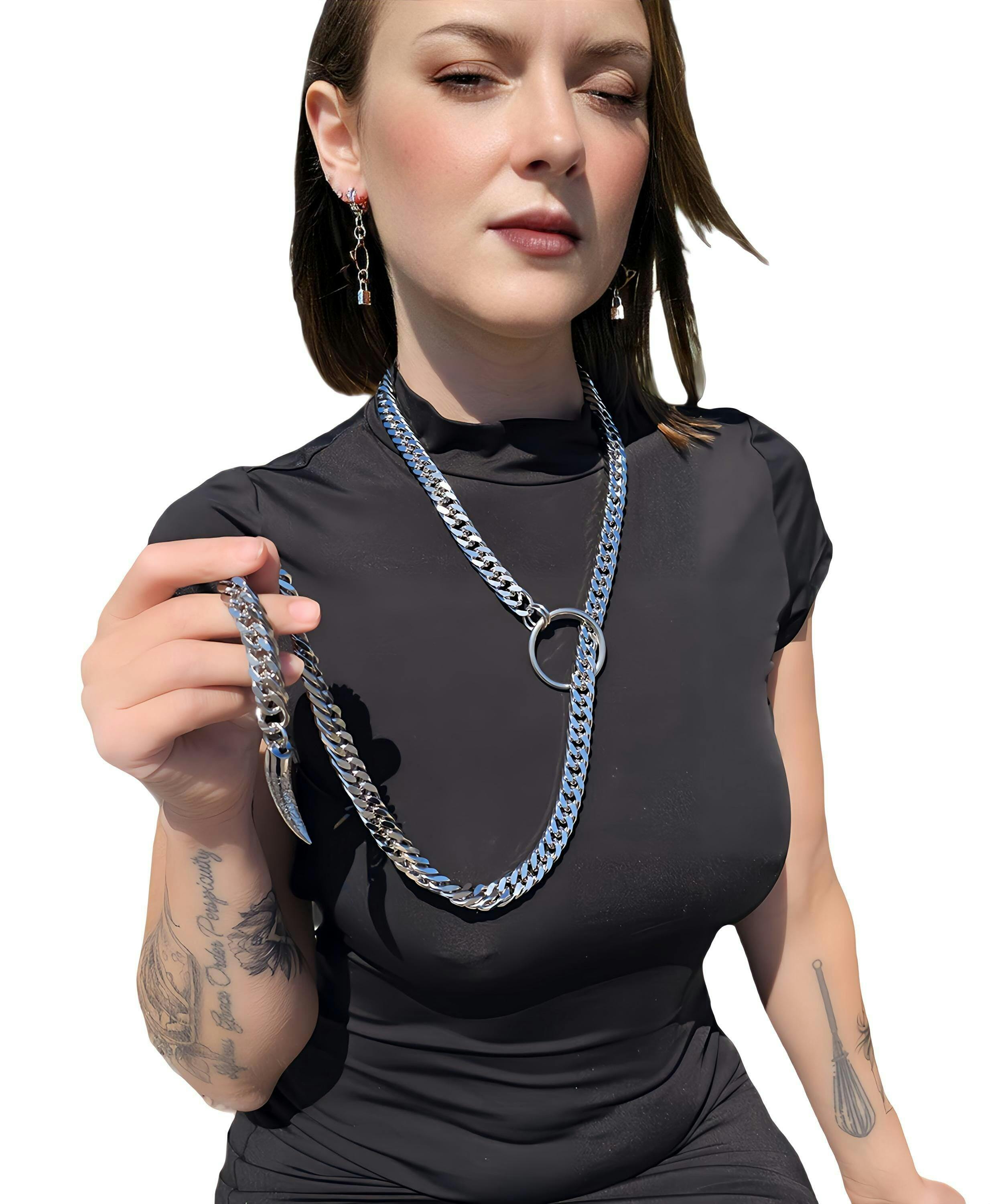 This is a very hefty slip chain slave collar style choker necklace. It is 100% stainless steel. It can be worn as elegant looking leash-type collar. The long chain leash end passes through a large stainless steel O Ring. Let it fall open and free for a playful effect or wrap it around the neck twice for an appealing everyday casual look. An elegant effect that has a touch of the forbidden, the effect is , intriguing, refined and playful. A great handmade intimate style couples gift for her, gift for him, or for yourself!