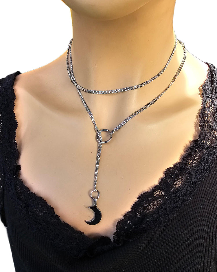 This is an all stainless steel Gothic moon Lariat layered wrap Necklace choker with a great Pagan witch aesthetic.