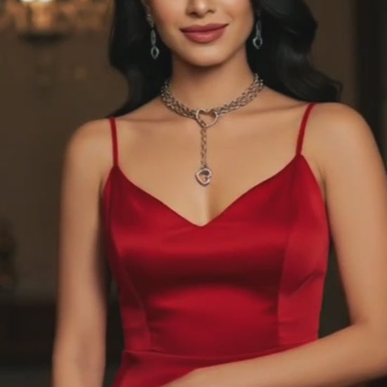 Slip Chain Lariat Leash Collar Choker Hearts Layered Necklace