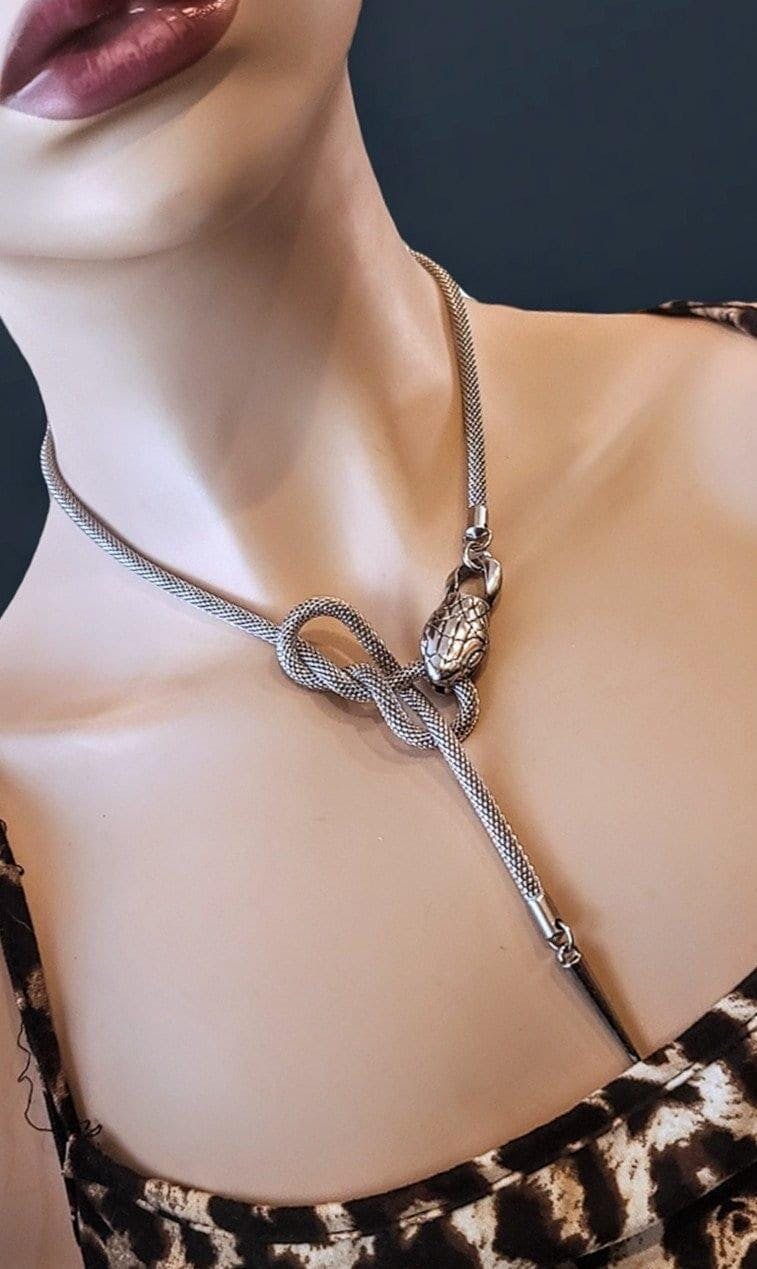Steel Snake Medusa Ouroboros Stainless Steel Statement Necklace